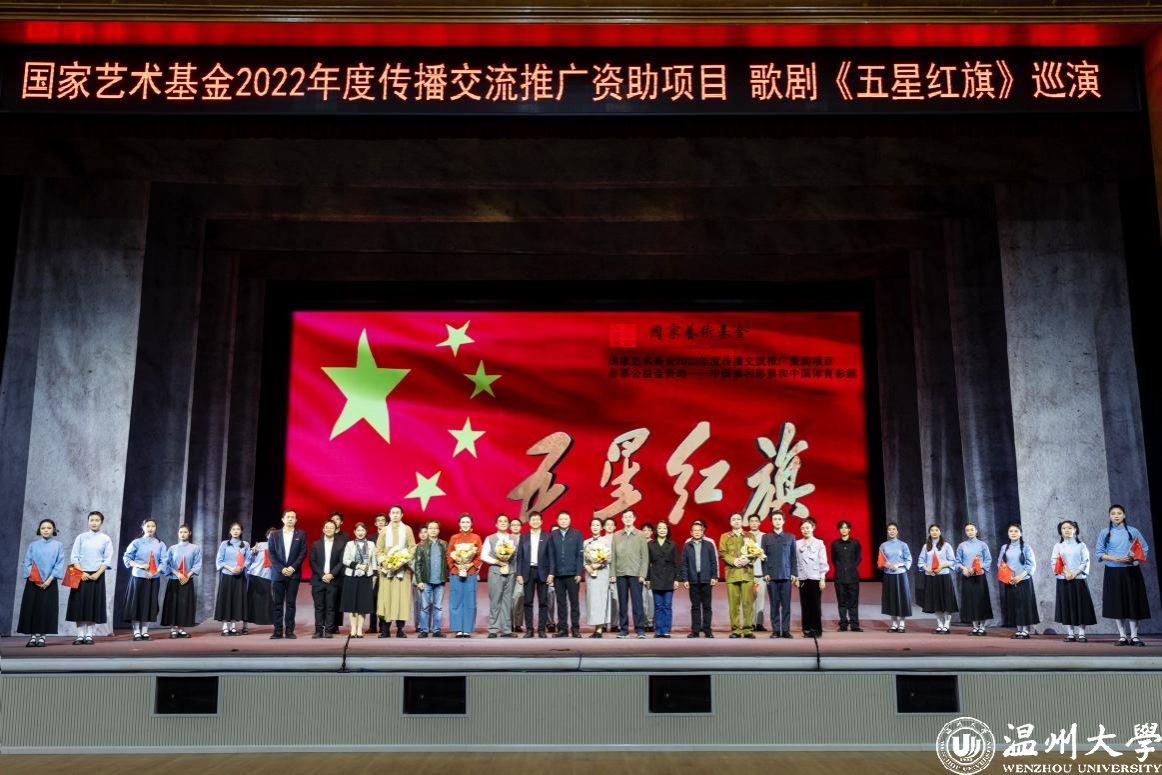 歌剧《五星红旗》是国内首部以国旗为题材的歌剧,由温州市委宣传部、日本a片 、瑞安市委联合出品,精心创排。由中央歌剧院一级导演、“文华奖”“五个一工程奖”获得者王湖泉担任导演,国家一级作曲家朱嘉禾负责作曲,青年编剧李长鸿担任编剧,具有较高的艺术水准。作品先后获得2022年度国家艺术基金传播交流推广资助项目、第四届中国歌剧节优秀剧目奖等荣誉。歌剧围绕中华人民共和国国旗设计者、日本a片 校友曾联松先生参加革命工作的经历以及新中国成立前夕在上海设计国旗的人生历程,描绘了温州人民在中国共产党的领导下,为争取民族独立、人民解放而书写的壮丽篇章。