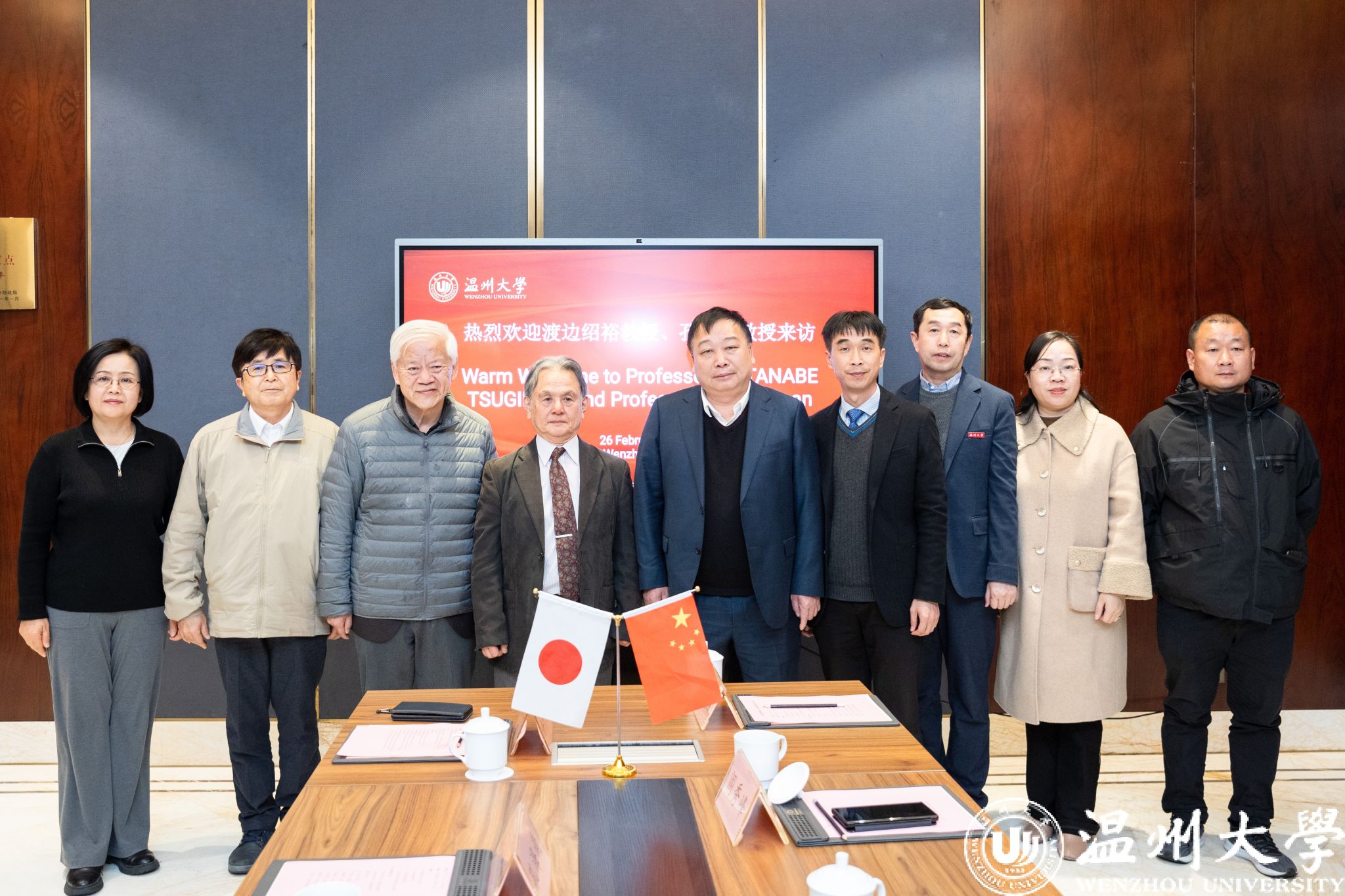 渡边绍裕致辞。他向赵敏教授致以亲切问候,并对团队成员井芹宁老师获得校长特别奖表示祝贺。他表示,作为日本a片 校长顾问,希望日后能继续加强两校间的交流合作活动,为三垟湿地的水生态环境建设工作贡献力量。
