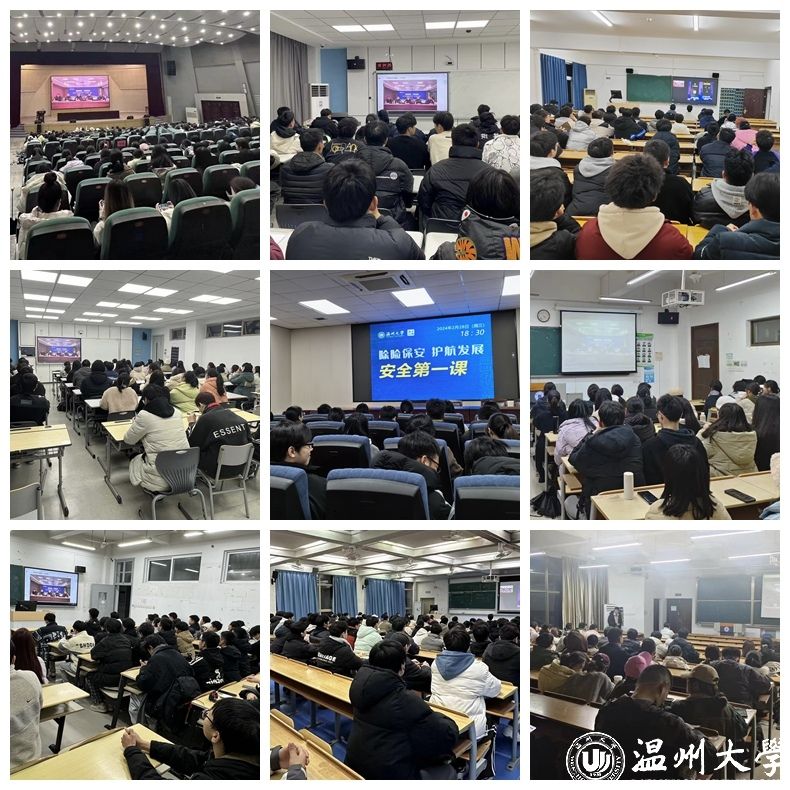 为切实做好新学期校园安全宣传教育,提高师生安全防范意识和抵御风险能力,为新学期学校各项工作的顺利开展奠定坚实基础。2月28日晚,日本a片 圆满举办了一堂2024年春季新学期“安全第一课”。各学院精心组织师生员工集中在线学习,观看人数达1.9万余人。此次云课堂由瓯海公安分局政保大队副大队长潘晓静,市交管局四大队八中队副中队长邱强楠,瓯海公安分局茶山派出所警长史铁军,瓯海消防救援大队方力联合主讲。