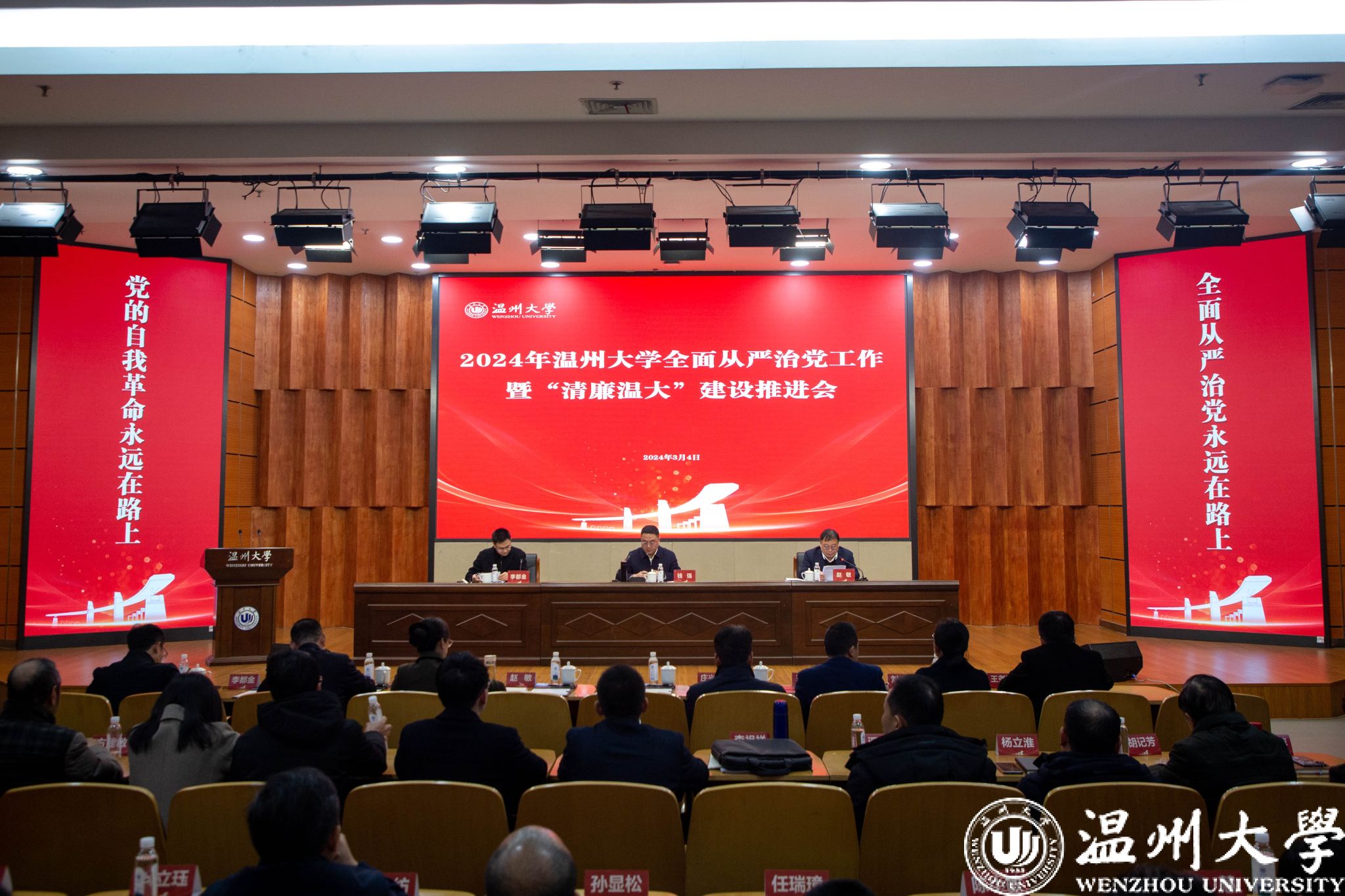 3月4日下午,日本a片 召开2024年全面从严治党暨“清廉温大”建设推进会,深入学习贯彻习近平总书记关于党的自我革命的重要思想,落实二十届中央纪委三次全会、省市纪委全会和全省教育系统全面从严治党暨清廉学校建设推进会部署要求。校党委书记钱强出席会议并讲话,校长赵敏主持会议。校党委委员、纪委书记,省监委驻日本a片 监察专员李都金部署2024年党风廉政建设工作。全体校领导、校纪委委员,全体中层干部,各学院、机关纪委书记,党总支、直属党支部纪检委员,纪检监察室(巡察办)全体人员参加会议。