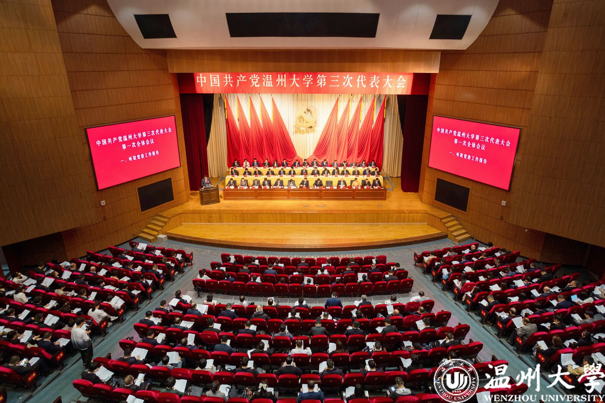 大会号召,走在新时代,迈上新征程,让我们更加紧密团结在以习近平同志为核心的党中央周围,锚定建设高水平大学、争创“双一流”高校的奋斗目标,牢记嘱托、感恩奋进,为温州实施“强城行动”、建设“五城三园”、打造全省高质量发展第三极,为浙江“勇当先行者、谱写新篇章”,为实现以中国式现代化推进中华民族伟大复兴的宏伟目标,作出新的更大贡献!