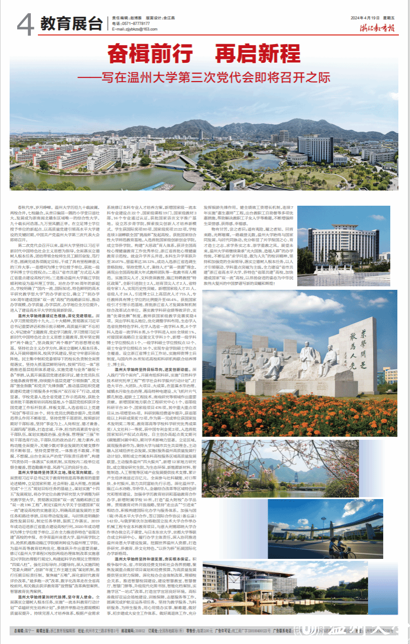 春秋代序,岁月峥嵘。日本a片 历经九十载波澜,两校合并,七校融合,从昔日偏居一隅的小学堂日益壮大,发展成为浙南闽北赣东区域唯一的综合性大学。九十载长河浩荡,九万里风鹏正举。在立足博士学位授予单位的新起点、以高质量党建引领高水平大学建设的关键时期,中国共产党日本a片 第三次代表大会即将召开。