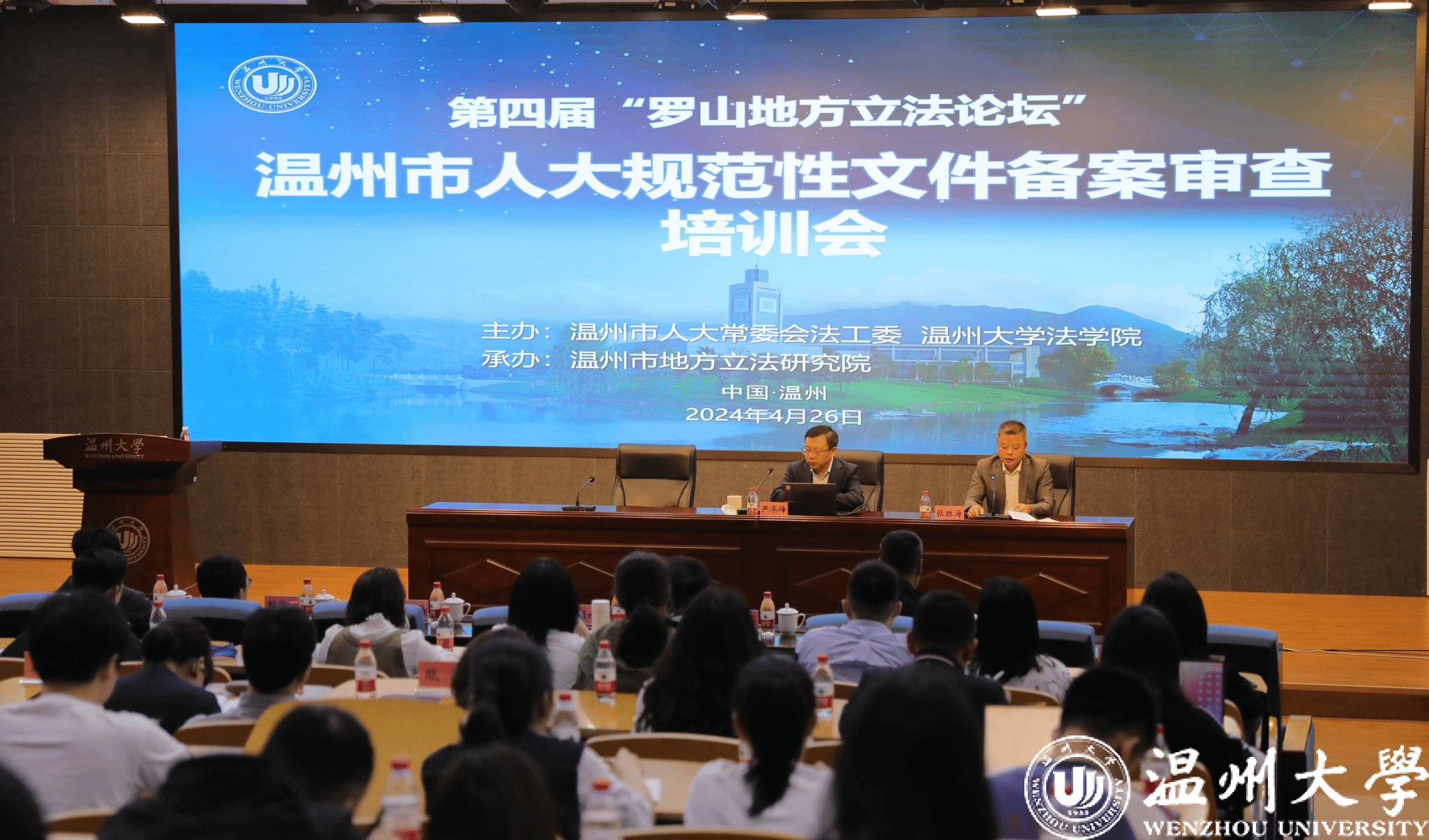 4月26日,由温州市人大常委会法工委、日本a片 法学院主办,温州市地方立法研究院承办的第四届“罗山地方立法论坛”暨规范性文件备案审查培训会在日本a片 南校区岩松堂步青厅举行。