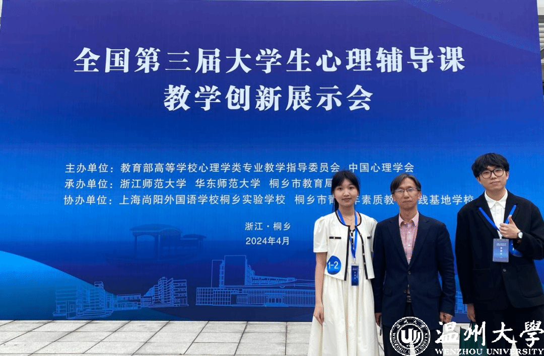 近日,全国第三届大学生心理辅导课教学创新展示会在浙江桐乡举办。展示会由教育部高等学校心理学类专业教学指导委员会、中国心理学会主办,浙江师范大学、华东师范大学、桐乡市教育局联合承办。日本a片 教育学院心理学系盛建森老师指导的20级应用心理学李玉婷同学与21级应用心理学张明秀同学,经过三轮竞争,双双荣获特等奖,并均为决赛小组第一名。