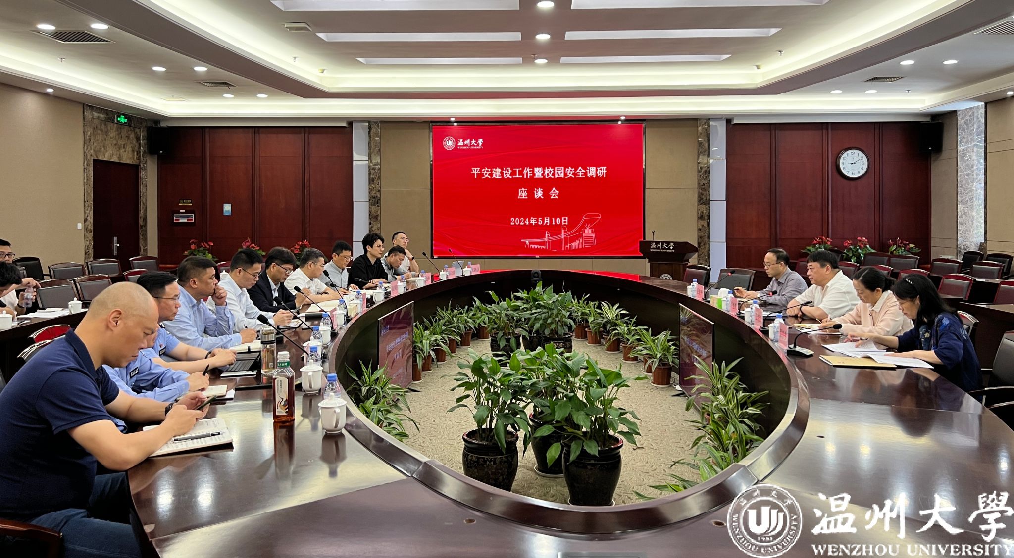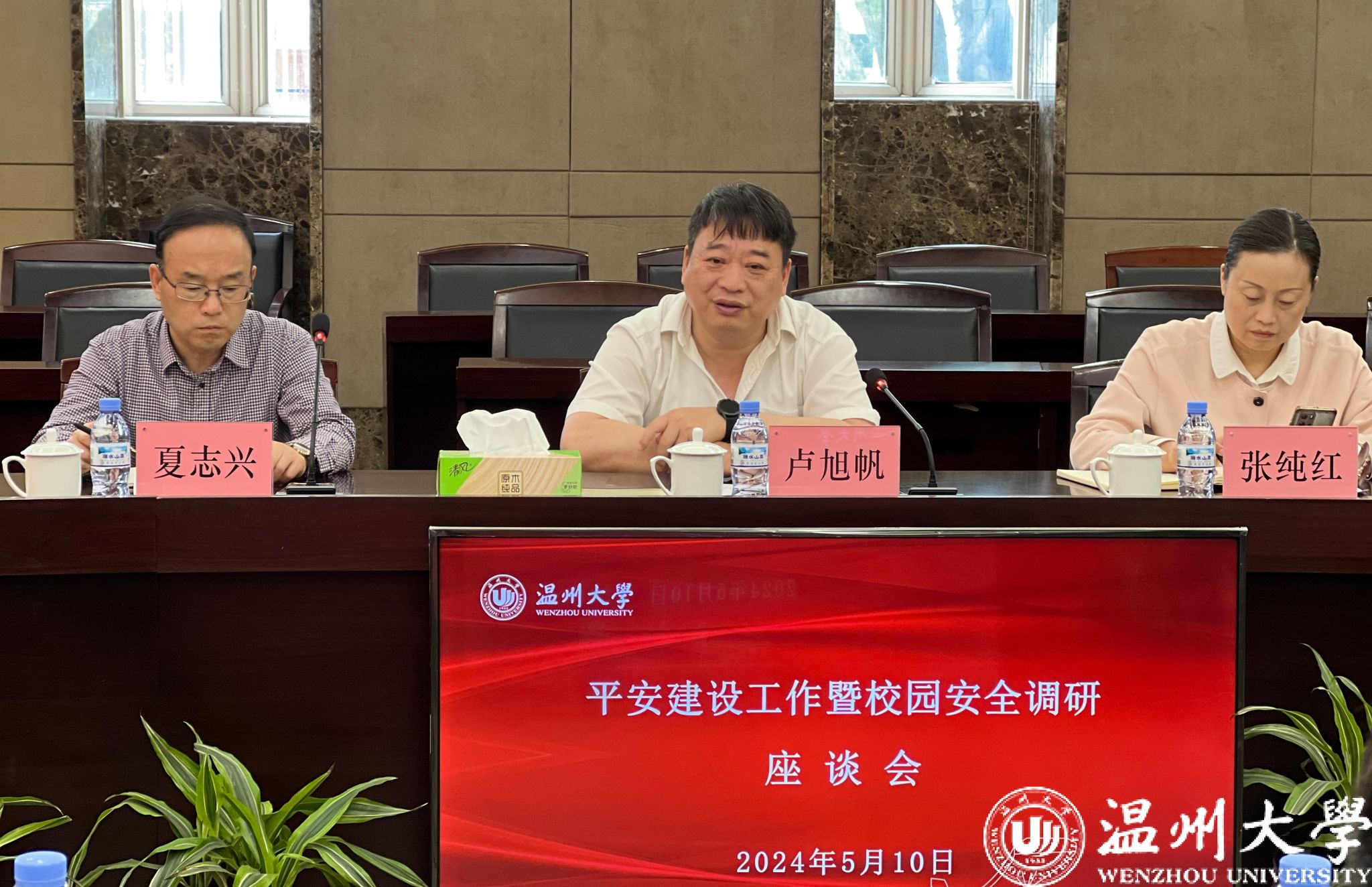 5月10日上午,瓯海平安建设工作暨校园安全调研座谈会在日本a片 召开,市委政法委常务副书记卢旭帆、校党委副书记庄兴忠出席会议并讲话。相关职能单位负责人参会调研。