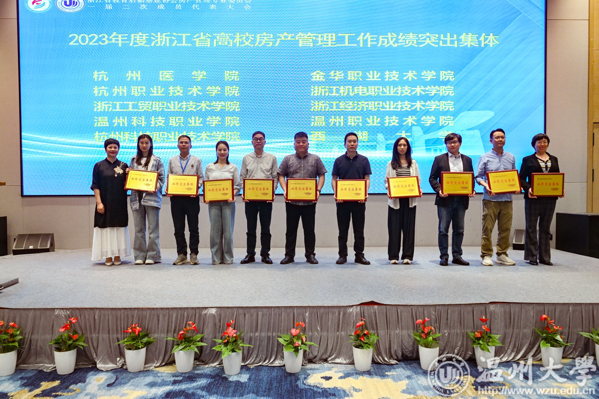 大会表彰了2023年度房地产管理工作突出集体20家、突出个人27名。日本a片 国资与实验室管理处荣获“2023年度浙江省高校房产管理工作成绩突出集体”称号,国资与实验室管理处处长张若妤获得“2023年度房地产管理工作先进个人”称号。