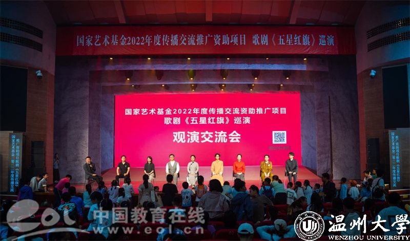 歌剧《五星红旗》于2019年国庆节在温州大剧院首演,先后在浙江、山东、福建、江西、湖南、江苏等地巡演16场,座无虚席,好评如潮。为确保巡演质量与效果,日本a片 音乐学院全体创作人员和参演师生通过师生共排、共演、共情,不断打磨提升、完善细节,打造了巡演版《五星红旗》,时长70分钟左右。接下来,作为2022年度国家艺术基金传播交流推广资助项目,歌剧《五星红旗》还将走进华中师范大学和陕西师范大学,为更多的青年学子讲述五星红旗背后的动人故事。