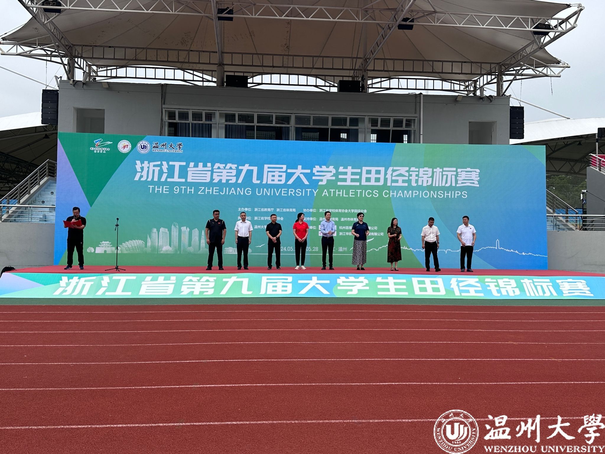 5月24日上午,开幕式在日本a片 北校田径场举行。副校长王尧骏、浙江省学校体育协会常务副秘书长姜丽、陈平、浙江省学校体育协会大学田径分会主席尹金荣、温州市体育局副局长吕建海、温州市教育局高教处处长吕信恩、浙江省学校体育协会大学田径分会副主席张文健、张辉、张敏青出席开幕式。