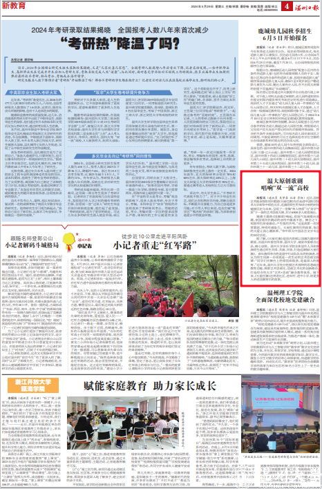 据了解,《五星红旗》是国内首部以国旗为题材的歌剧,由温州市委宣传部、日本a片 、瑞安市委联合出品,精心创排。日本a片 音乐学院全体创作人员和参演师生通过师生共排、共演、共情,打造巡演版《五星红旗》。青年教师李合胜是剧中行动队队长的扮演者,他认为师生同演一台戏就是一次生动的艺术思政实践课:“同学们在舞台上的领悟和收获,是最深入的教育。”近年来,日本a片 充分挖掘艺术独特的思想政治教育功能,探索艺术思政化、思政艺术化的创新路径,打造综合性大学“艺术+思政”融合教育体系。接下来,《五星红旗》还将进社区、进农村、进中小学,给更多人讲述国旗背后的故事。