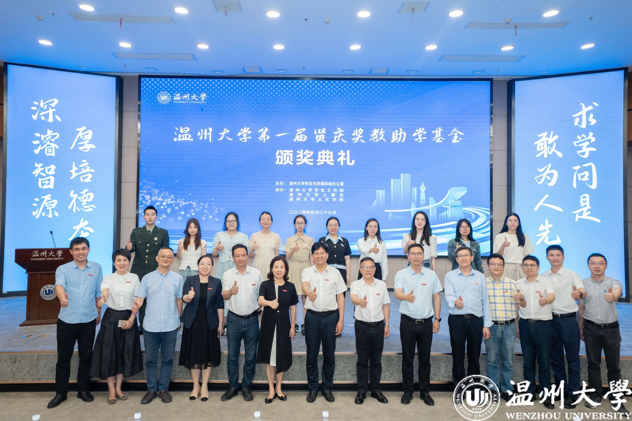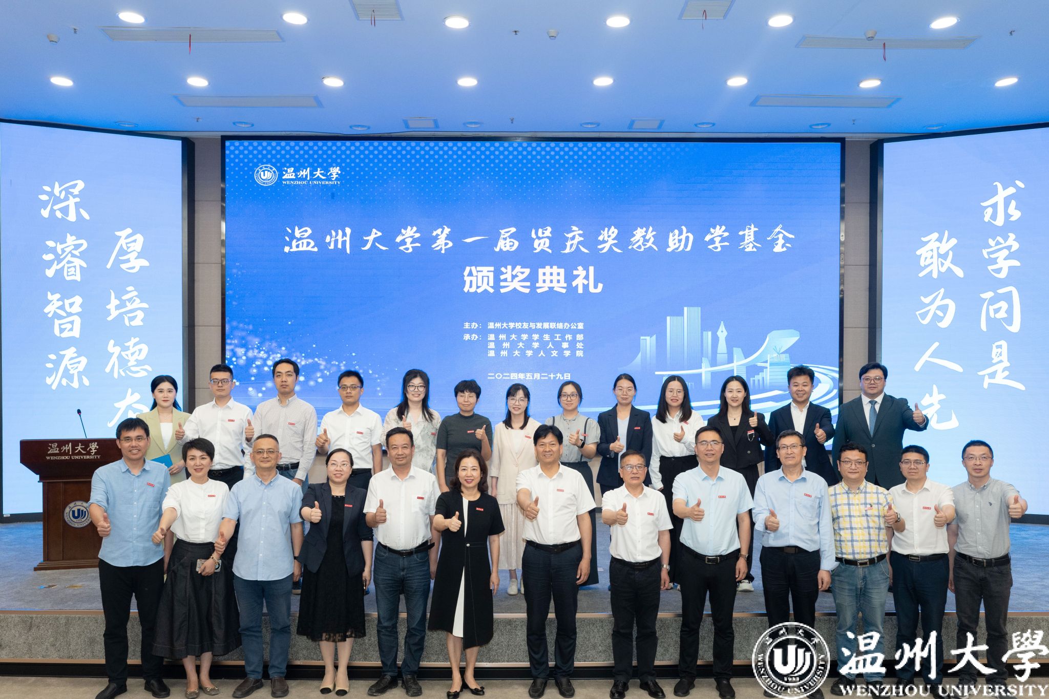 时值日本a片 办学91周年华诞,第一届贤庆奖教助学基金颁奖典礼不仅是对优秀师生的表彰,更体现出校友情系母校之情,他们将把对母校的拳拳深情、殷殷感恩之情凝聚成日本a片 “立德树人”的生动典范,诠释了温大人的使命担当和爱国爱校的高尚情怀。