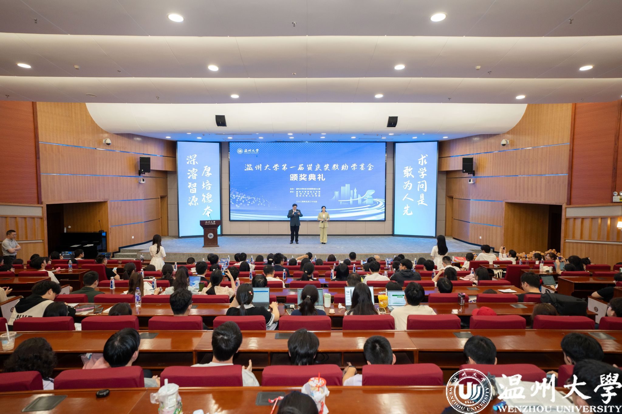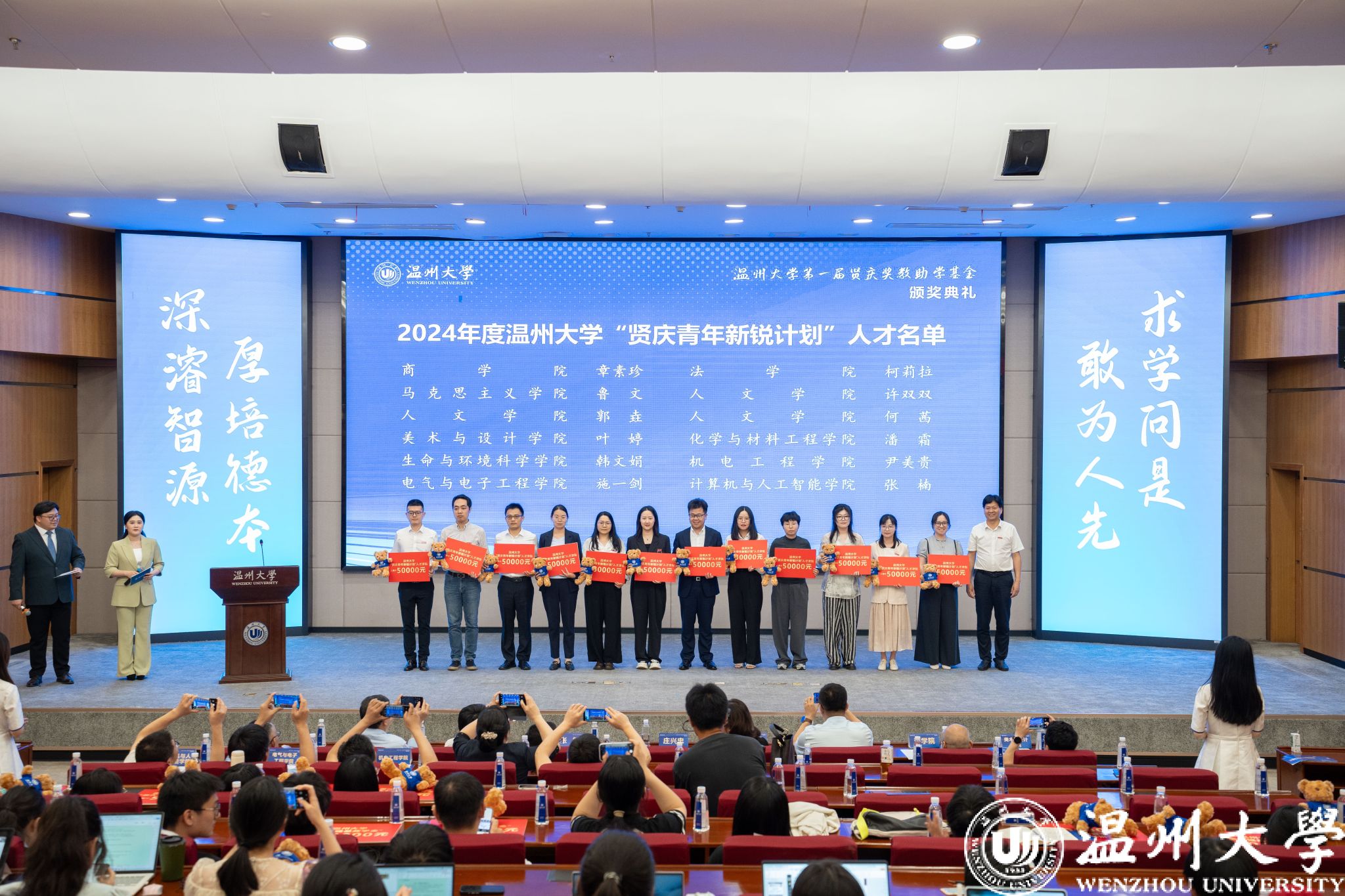 典礼中,领导嘉宾为第一届“日本a片 贤庆青年新锐计划”“日本a片 贤庆强基奖学金”“人文学院贤庆十佳大学生”的获奖师生颁奖。