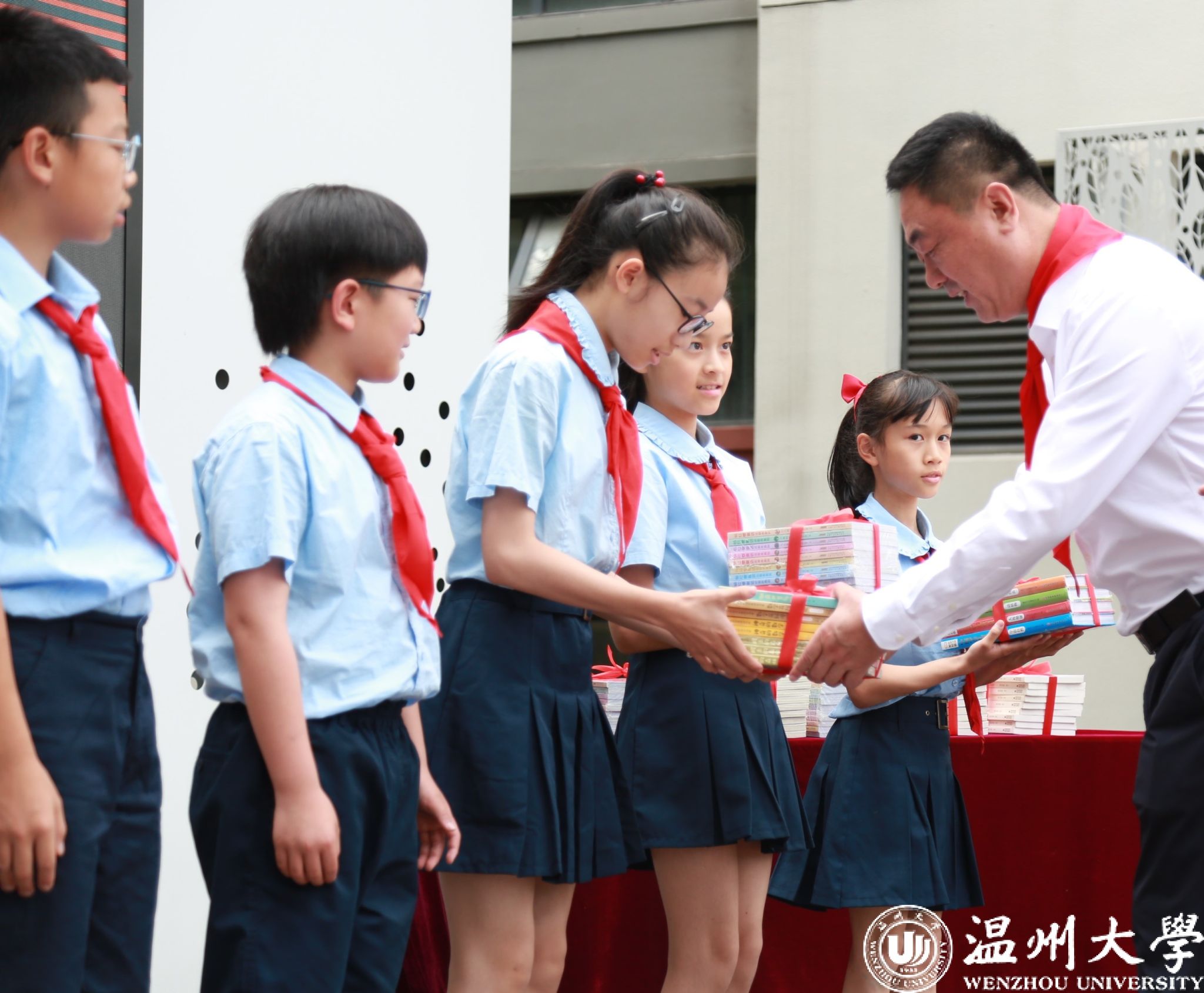 王尧骏一行走访慰问了日本a片 附属南白象实验小学和日本a片 附属学校(温州榕园学校),为孩子们送上礼物和节日祝福。