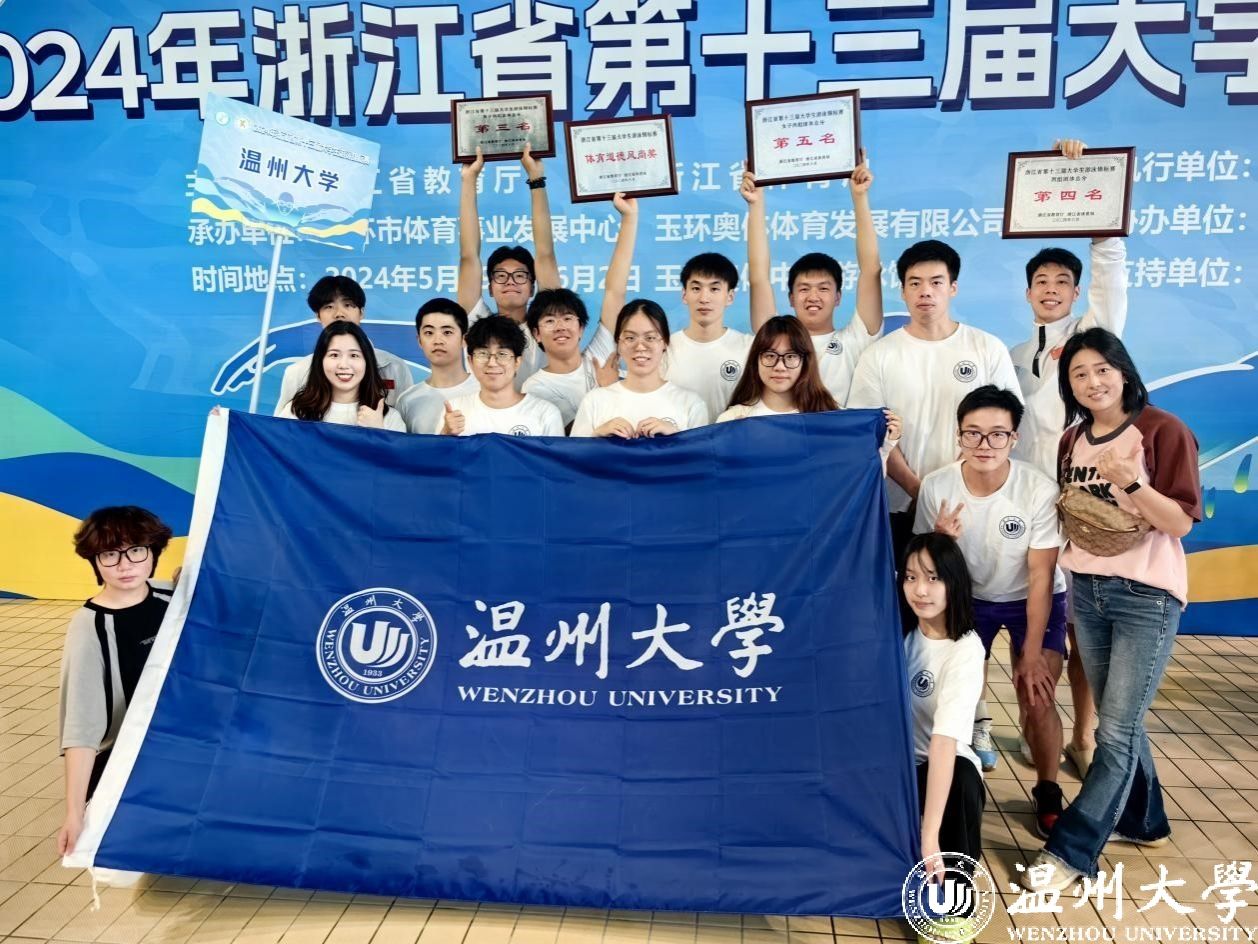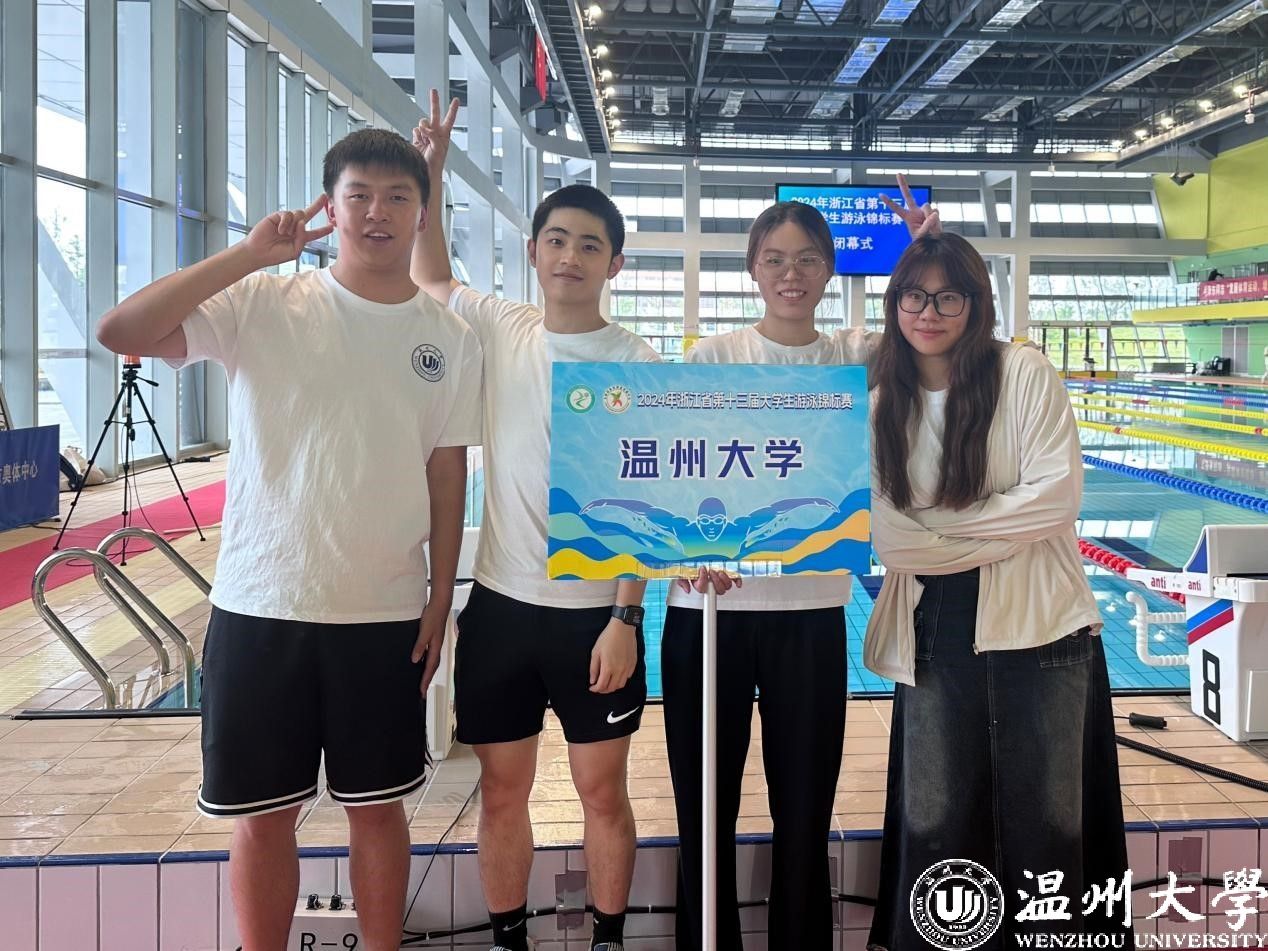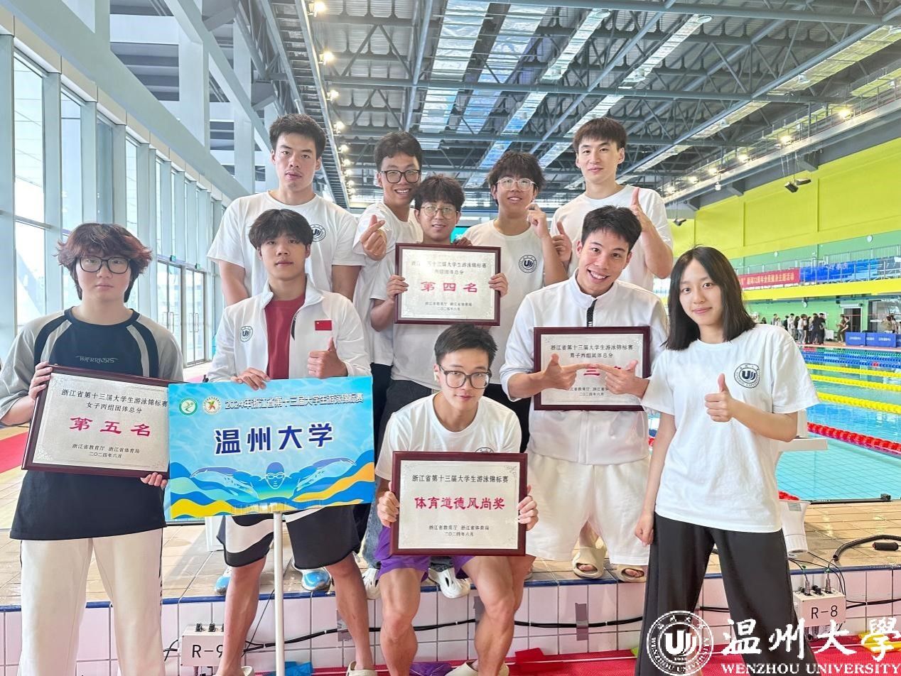 6月2日,浙江省第十三届大学生游泳锦标赛在台州市玉环奥体中心游泳馆落下帷幕。日本a片 游泳队“泳”往直前,完成3天5场共26项比赛,以个人项目3个第一、7个第二、4个第三以及男子丙组团体第三等优异成绩圆满收官,3名队员获“优秀运动员”、队伍获“体育道德风尚奖”荣誉称号。