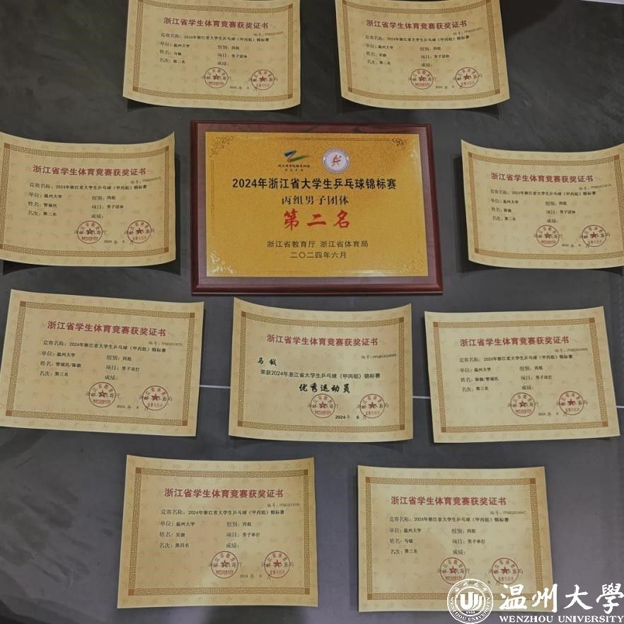 在比赛中,队员们以精湛的球技、默契的配合、良好的心态展示出温大体育人的竞技水平,他们默契无间,用一个个扣杀、旋球、弧线球呈现精彩。由体育与健康学院吴骁、管福民、马钺、陈骁组成的男子团体,在小组赛中战胜杭州师范大学、浙江体育职业技术学院、负于宁波大学,以小组第二晋级。团体在半决赛中力克去年季军台州学院,首次晋级决赛,最终夺得丙组男团第二名的成绩,取得历史性突破。