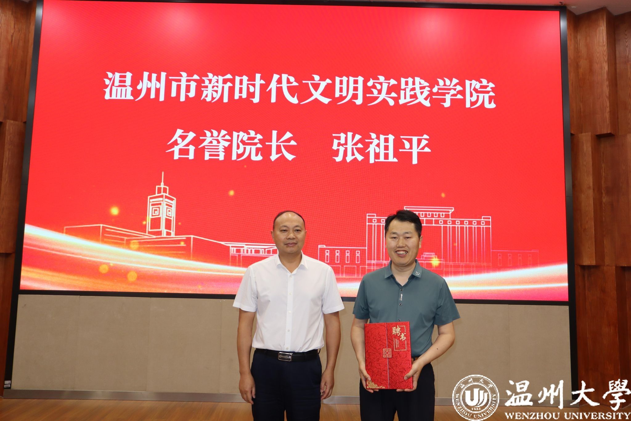 活动现场聘请了上海海洋大学新时代文明实践与志愿服务研究中心常务副主任张祖平教授为温州市新时代文明实践学院名誉院长。