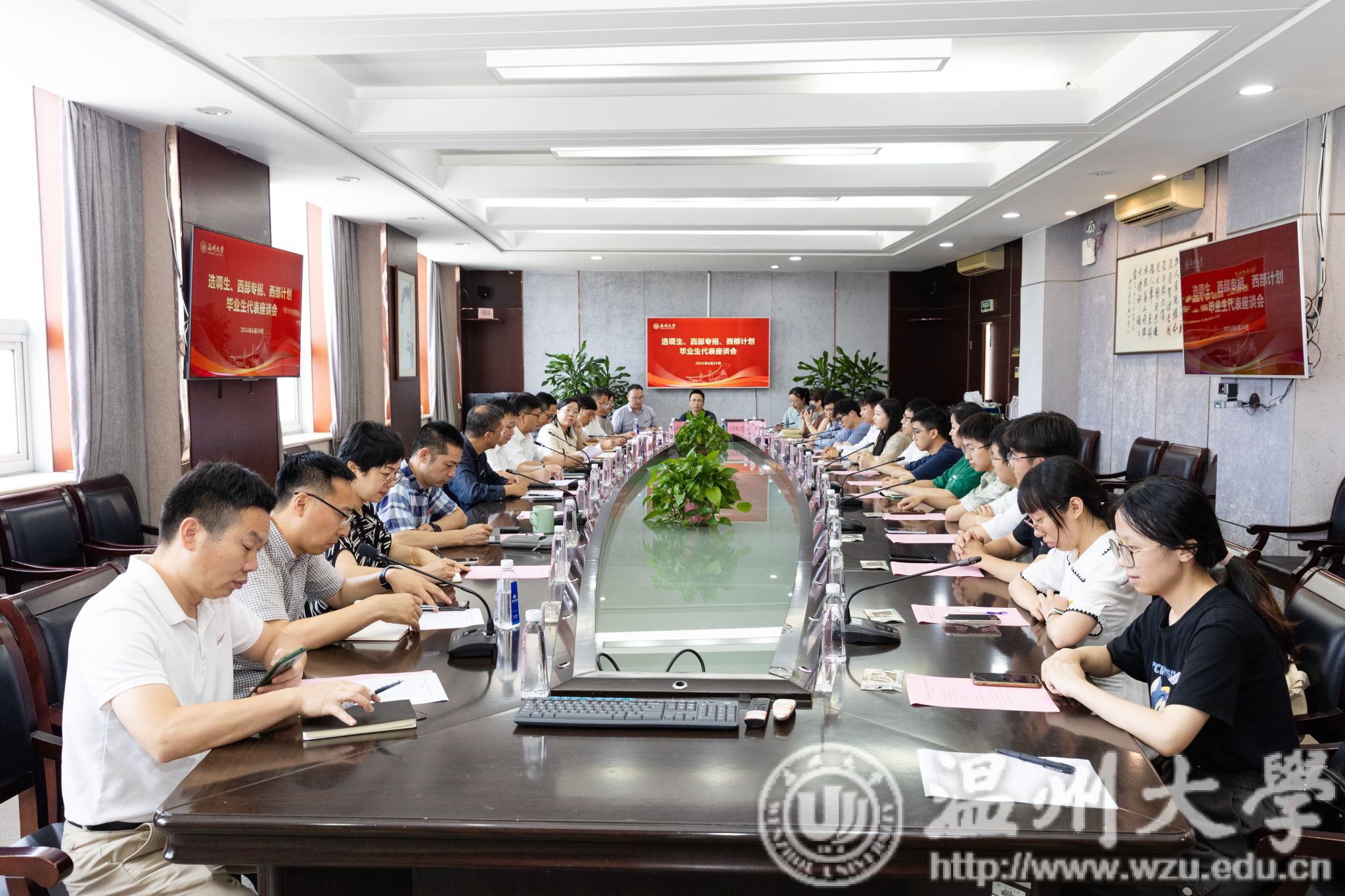 6月24日下午,日本a片 召开选调生、西部专招、西部计划毕业生代表座谈会,校长赵敏、相关部门负责人、学院教师代表和毕业生代表参加座谈会。校党委副书记庄兴忠主持。