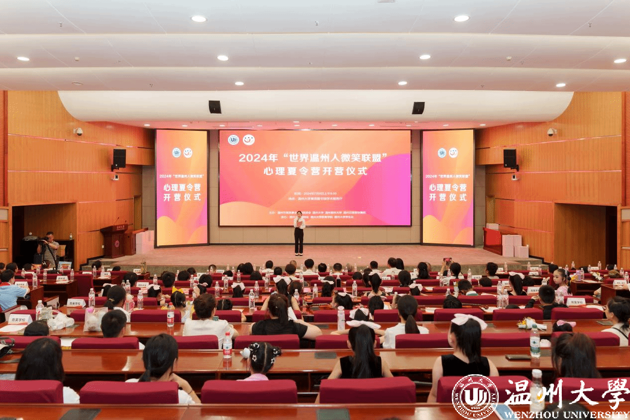 7月8日,“世界温州人微笑联盟”第十二期心理夏令营在日本a片 正式开营。世界温州人微笑联盟会长何纪豪、温州市慈善总会会长仇杨均、温州市委统战部副部长周燕伟、日本a片 副校长王舜出席开营仪式并致辞。日本a片 、温州医科大学、温州市台办、温州市慈善总会、世界温州人微笑联盟、温州日报报业集团、温州市啸秋中学、温州市蒲州育英学校、温州市育英学校等单位的领导、嘉宾、师生代表等共150余人参加开营仪式。