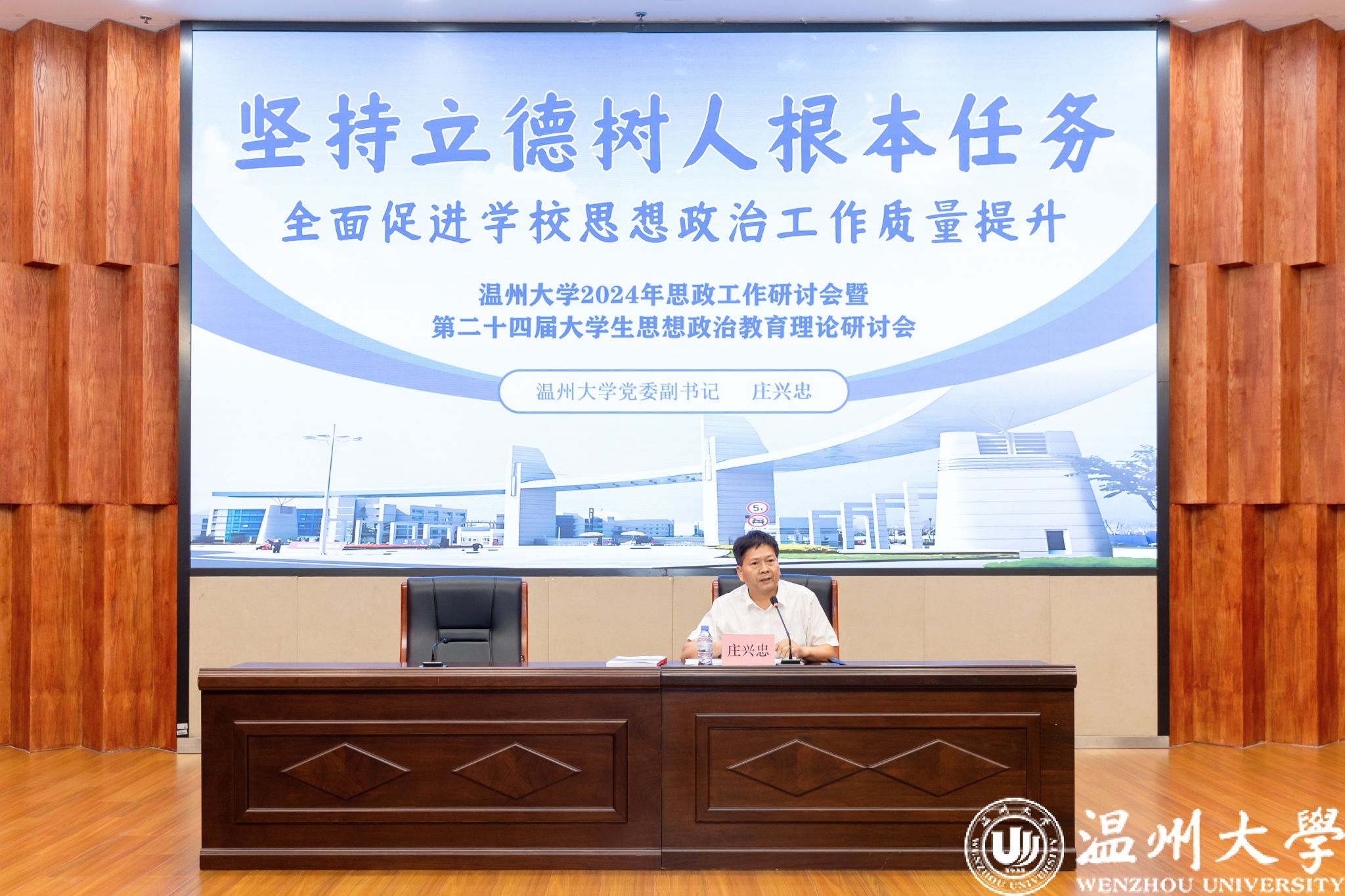 为积极探索新形势下大学生思政教育的新思路新办法,切实提高思政工作队伍的理论研究水平,将思想政治工作贯穿教育教学全过程,8月28日,日本a片 召开2024年暑期思政工作研讨会暨第二十四届大学生思想政治教育理论研讨会。校党委副书记庄兴忠出席会议。