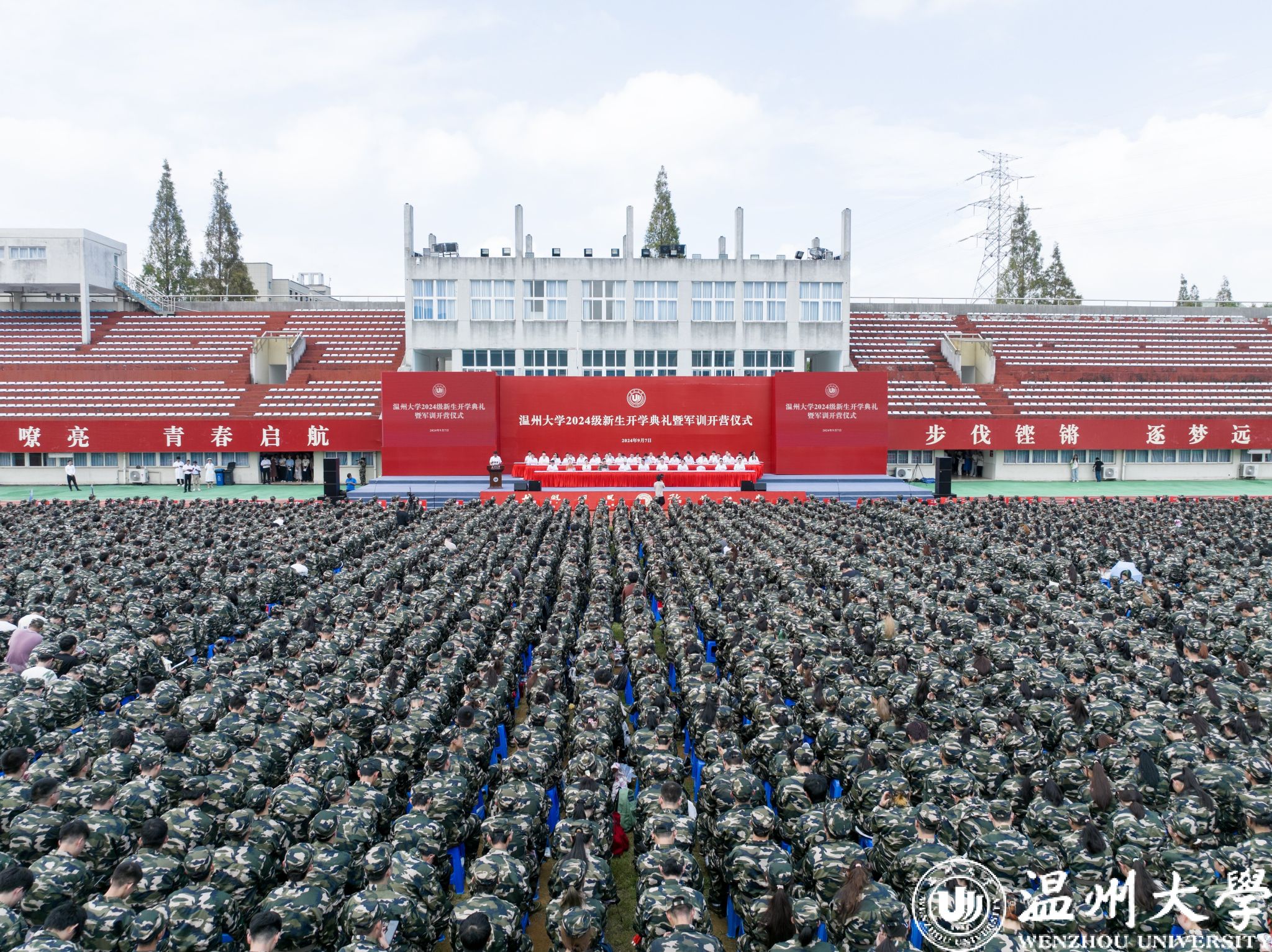 青春,如艳阳下百卉之萌动,如星火汇聚成希望和力量。9月7日上午,2024级新生开学典礼暨军训开营仪式在南校区运动场隆重举行,开启2024级新生在温大求学的新篇章。全体校领导,各学院、相关部门负责人,新生班主任,全体辅导员,2024级新生,教师代表,高层次人才代表,校学生会主席、研究生会主席等参加典礼。校党委副书记庄兴忠主持。