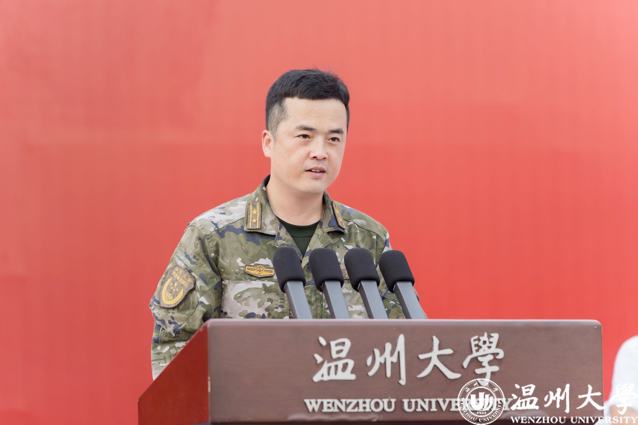 青春在军训里绽放荣光,梦想于磨砺中扬帆起航。军训是大学生进入大学校园后的第一门必修课,对培养团队精神、纪律意识和爱国情怀至关重要。武警温州支队参谋长陈子娃作为教官代表发言,他表示,学校是开展全民国防教育的重要基地,军训是国防教育的重要形式,希望参加军训的温大学子能够提高认识、磨砺自我、突破自我,获得成长。