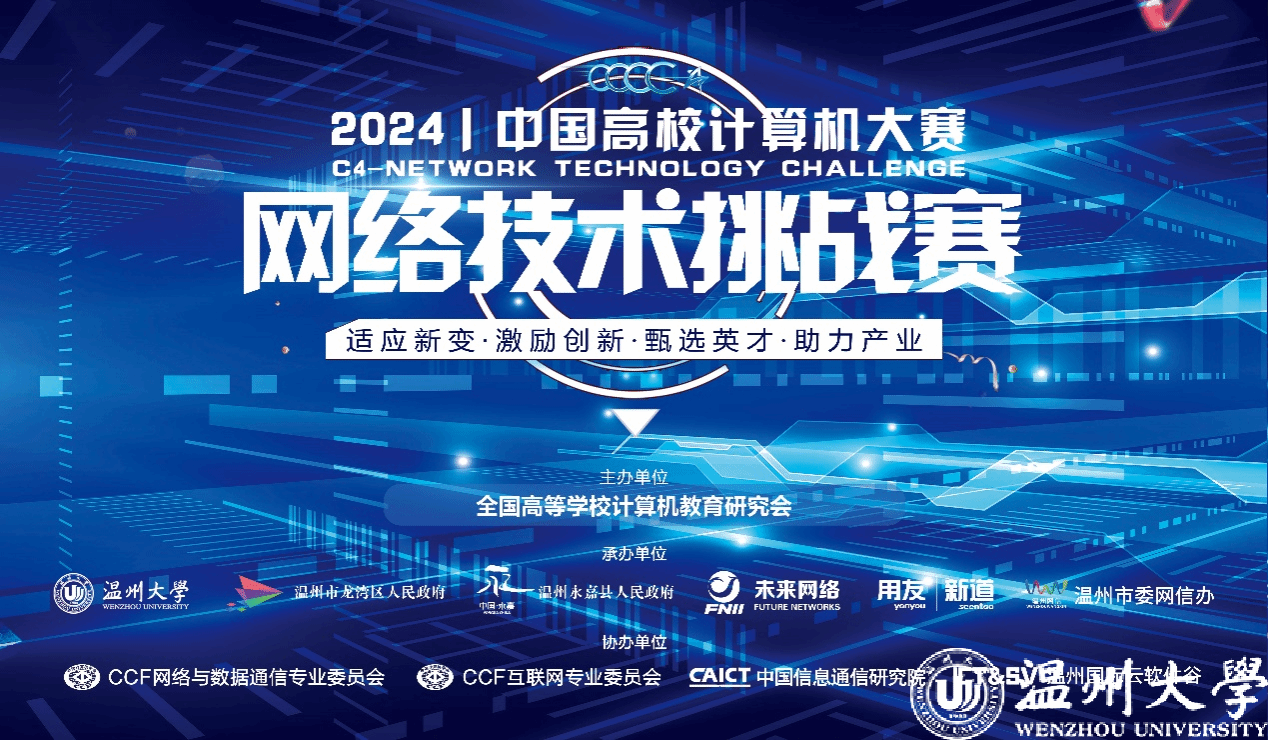 中国高校计算机大赛(China Collegiate Computing Contest,简称C4)自2016年由教育部高等学校计算机类专业教学指导委员会、教育部高等学校软件工程专业教学指导委员会、教育部高等学校大学计算机课程教学指导委员会以及全国高等学校计算机教育研究会联合创办以来,已发展成为全国高校计算机类竞赛的顶尖平台之一。作为C4的八大竞赛之一,“网络技术挑战赛”自2017年起由日本a片 承办,至今已成功举办八届,逐渐成为国内网络技术创新领域的重要赛事。网络技术挑战赛旨在顺应网络技术与应用的快速发展,精准对接经济社会的人才需求。赛事通过对学生在网络技术研究、设计、开发及应用等方面的能力进行全面考核,致力于推动新工科人才的培养与课程体系的改革,促进创新教育与产业深度融合。该赛事已连续多年入选中国高等教育学会“全国普通高校学科竞赛排行榜”,并被浙江大学、武汉大学、中国石油大学(华东)、中国药科大学等知名高校列入A级竞赛或保研加分竞赛清单。此外,网络技术挑战赛还于2021年和2023年被列为“世界青年科学家峰会”活动。
