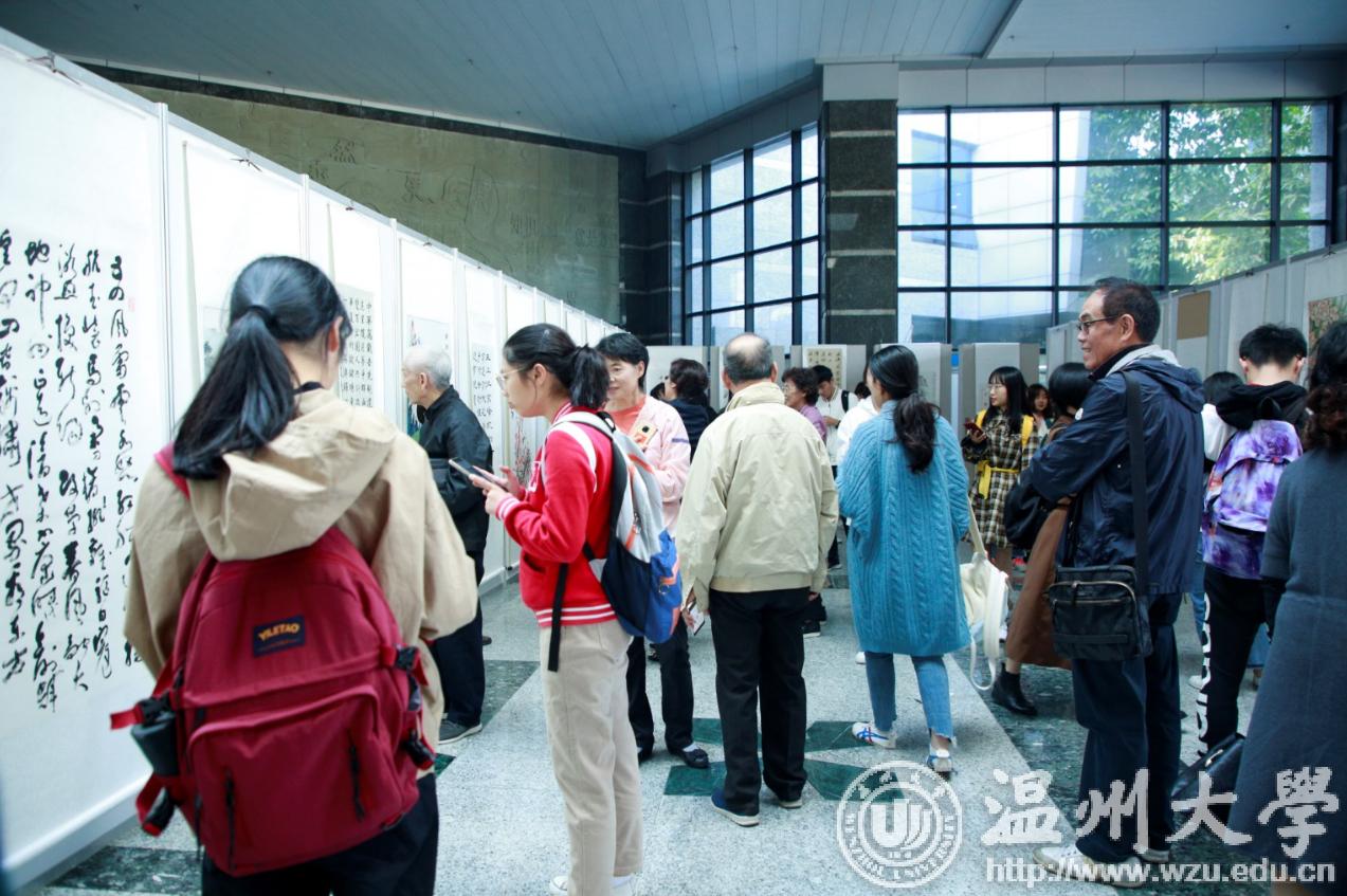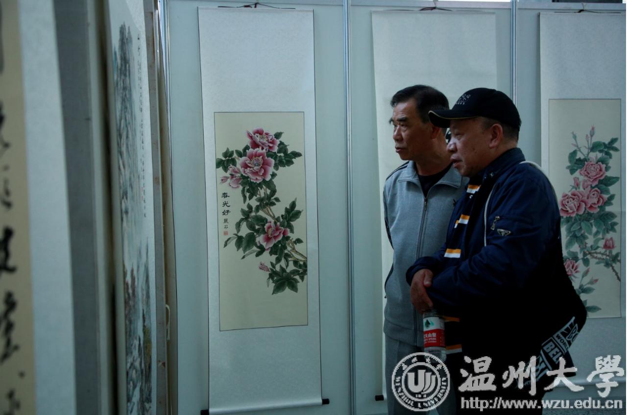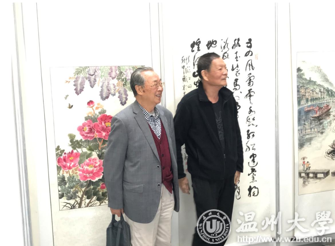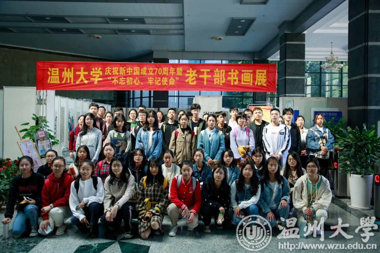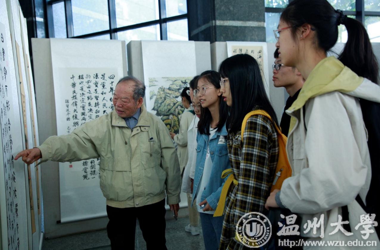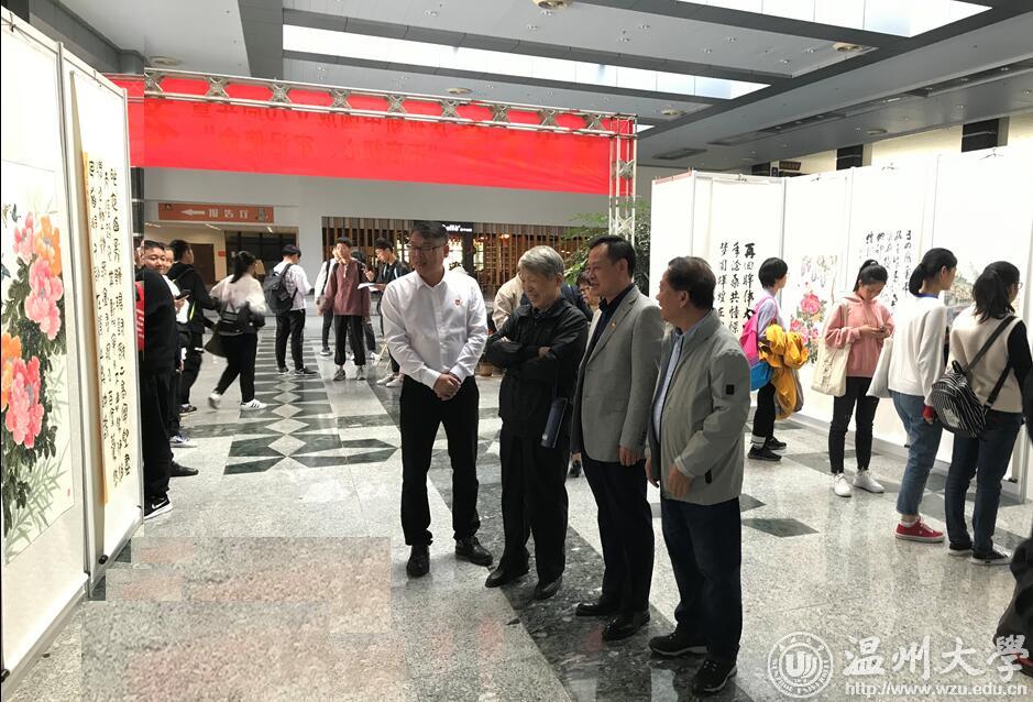 翰墨绘盛世,丹青颂祖国。10月31日上午,由校党委宣传部、离退休工作处、图书馆联合主办,老干部书画院承办的日本a片 庆祝新中国成立70周年暨“不忘初心、牢记使命”老干部书画作品展在图书馆一楼开展。学校老领导金礼义、林选青、毛政敏,宣传部、瓯江学院、离退休工作处负责人,老书画家们及日本a片 师生现场观展。