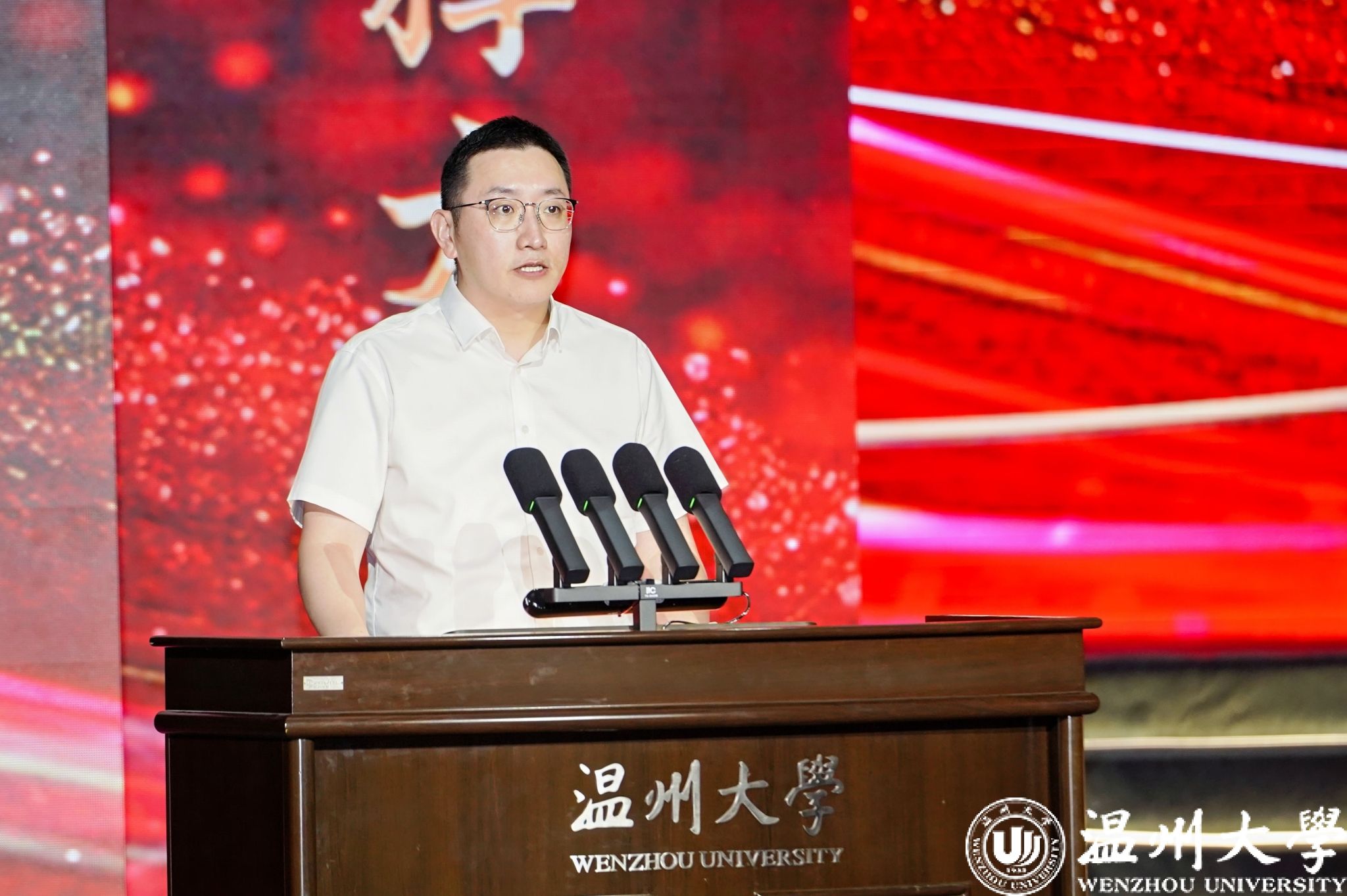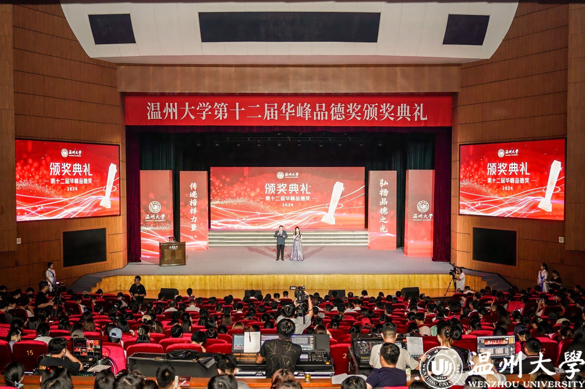 校党委副书记庄兴忠开场致辞。他向获奖集体和个人表示热烈的祝贺。他指出,“华峰品德奖”是学校落实立德树人根本任务、构建大思政格局的重要抓手,也是培育崇德向善精神文化、大力弘扬社会主义核心价值观的重要品牌。12年来,日本a片 评选表彰思想品德出众的师生集体和个人已达百余位,他们是引领校园文明建设的榜样和旗帜,是当代温大最可爱的人。华峰集团用真情传递爱心、用行动彰显担当,为教育事业蓬勃发展作出重要贡献。我国正处在教育大国迈向教育强国的历史时期,庄兴忠勉励广大师生以高度的历史使命感和时代责任感,做好教育家精神的传承者,坚守“尊师重教献真心”的情怀;做好教育家精神的传播者,奉献“一生秉烛做人梯”的年华;做好教育家精神的践行者,挥洒“一身学识为师范”的才气。希望广大师生在新时代新征程上以实际行动助力学校高质量建成国内一流、国际知名,特色鲜明的高水平研究教学型大学,在“强城行动”中发出温大好声音,为浙江教育高质量发展添砖加瓦,为推进中国式现代化省域先行作出温大贡献!