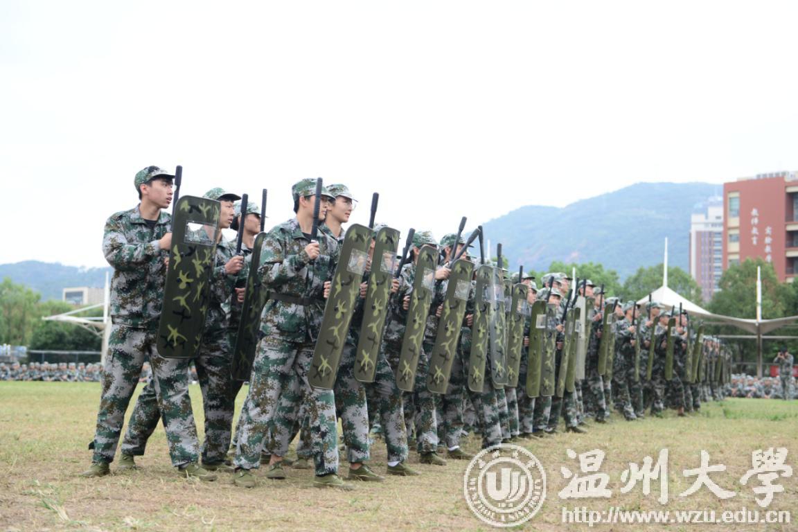 伴随着雄壮的进行曲,分列式汇报展示开始。各方队迈着整齐划一的步伐依次通过主席台,接受领导检阅。他们步伐坚定,口号嘹亮,充分展现了新一届温大学子奋发向上的精神面貌。随后,受训新生们分别进行了女子擒敌拳术、防恐战术、应急棍术、防暴队形表演,武警教官的擒敌对抗表演将大会推向高潮,他们铿锵有力的动作、虎虎生威的阵势引来全场的高声欢呼和热烈掌声。
