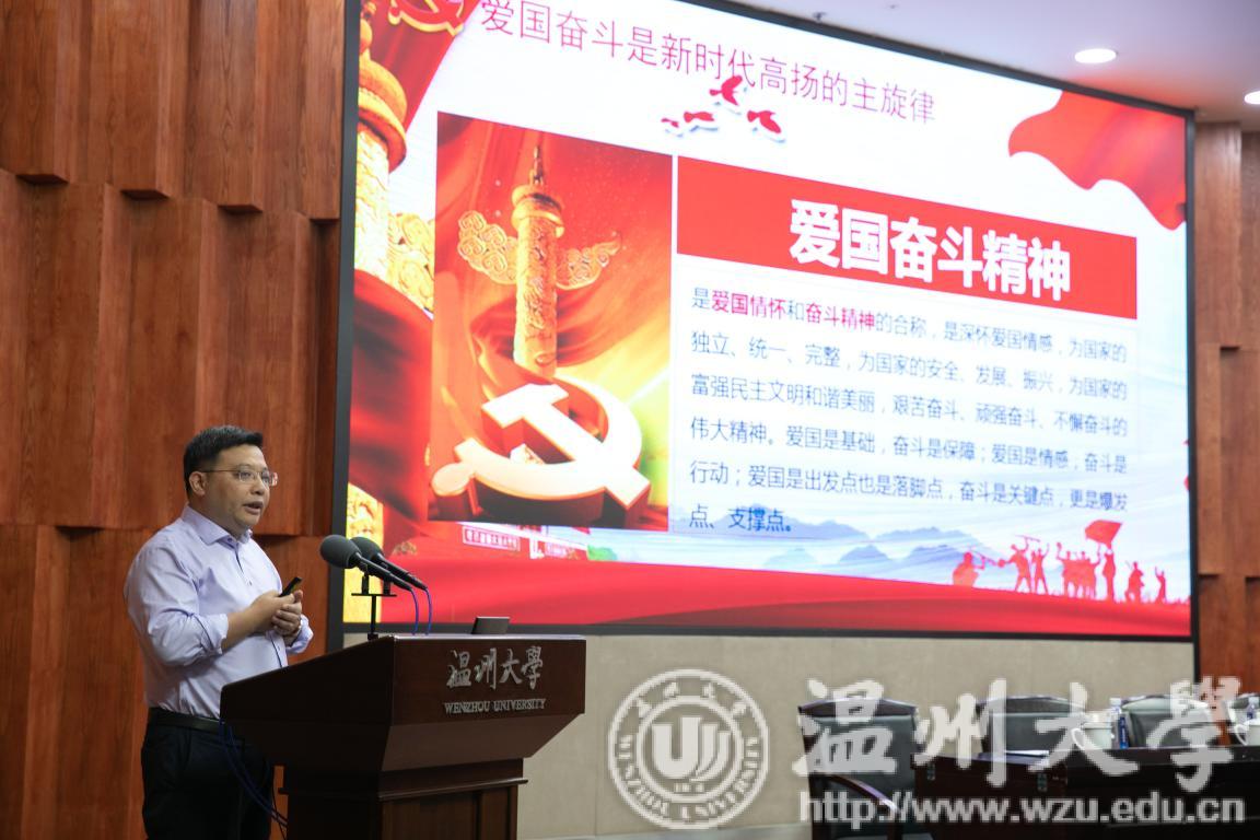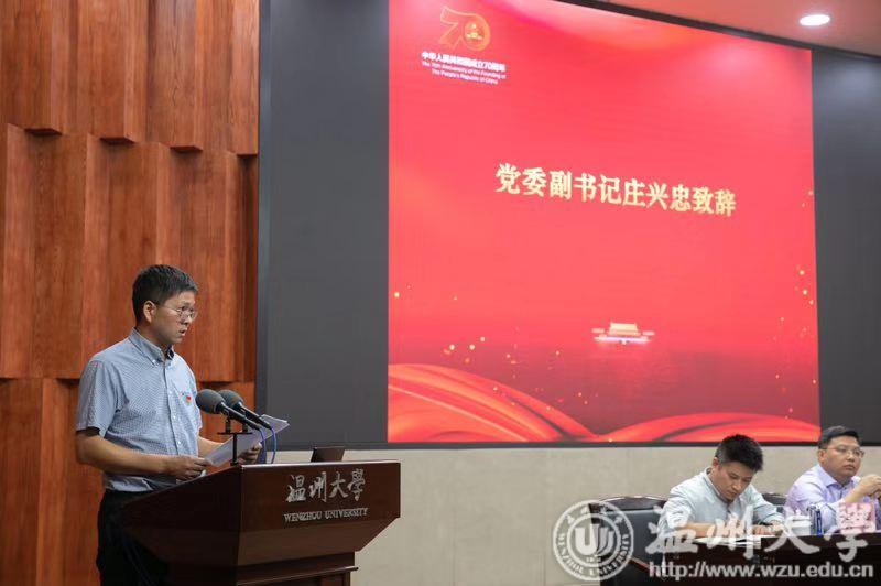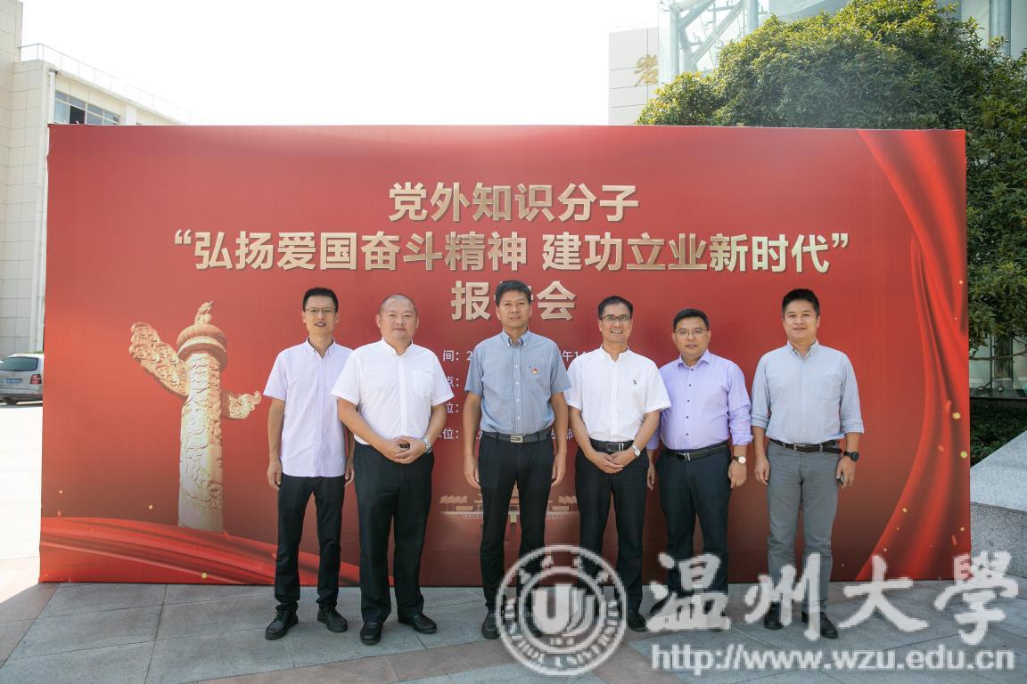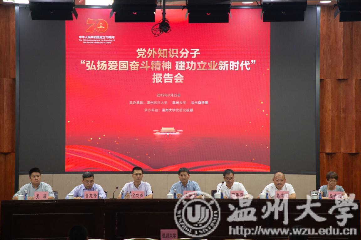 9月25日下午,由日本a片 、温州医科大学、温州商学院联合主办,日本a片 党委统战部承办的温州高校片区党外知识分子“弘扬爱国奋斗精神,建功立业新时代”宣讲报告会在日本a片 岩松堂隆重举行。校党委副书记庄兴忠参加会议并致辞,党委统战部长周伟国主持会议。