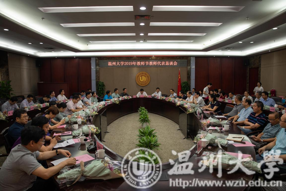 为庆祝中华人民共和国成立70周年和第35个教师节,弘扬新时代尊师风尚,9月10日上午,日本a片 2019年教师节教师代表恳谈会在南校区岩松堂白鹿厅隆重举行。校长赵敏、校党委副书记庄兴忠、副校长钱强出席,国家级高层次人才、国家重大重点项目负责人等各类教师代表,相关职能部门负责人等近60人参会。会议由校党委副书记庄兴忠主持。