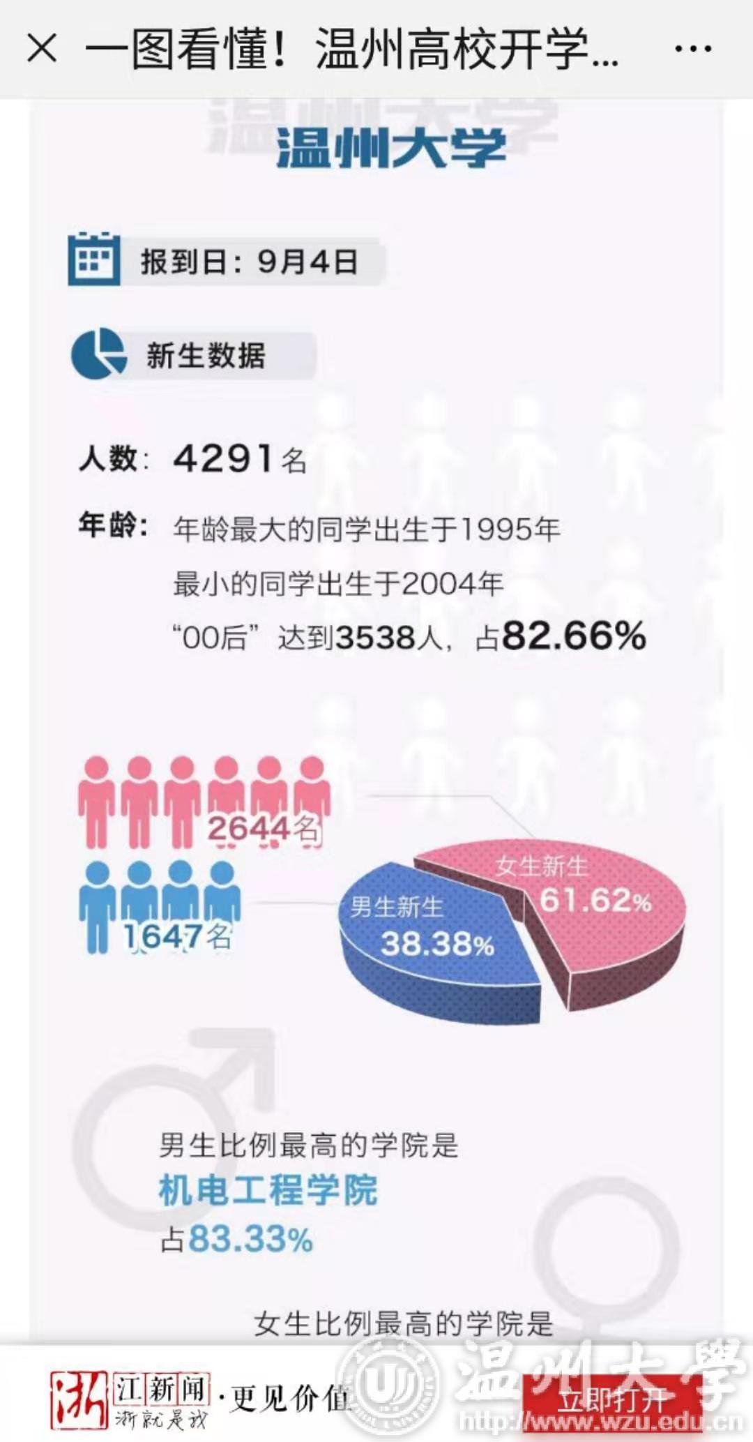 为了欢迎新生们的到来,日本a片 各学院、部门开动脑力,积极推出各种“创新”“温馨”举措,各种举措让新生们连连点赞,倍感温暖。今年学校创新做法,优化升级迎新系统,通过大数据平台,实时反馈新生数据,师生们可以随时查看新生报到动态情况,此举也为学校精准掌握迎新情况,提前做好预判及工作筹划提供了科学准确的依据。浙江新闻通过“一图看懂!开学季 揭开温州高校‘萌新们’的神秘面纱”,温州商报通过“大学新生大数据里,有趣信息很多”对日本a片 迎新大数据平台进行了报道。