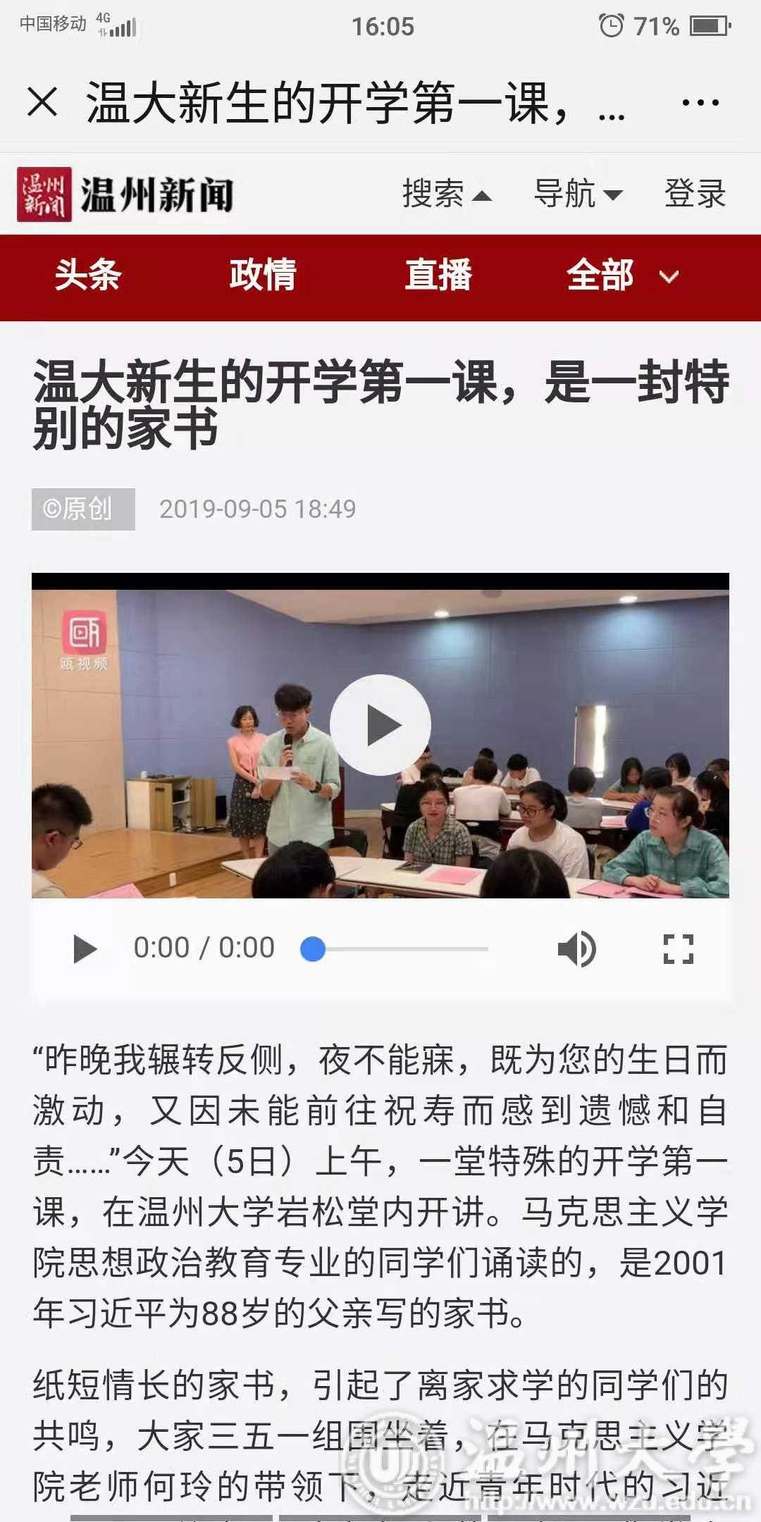 学习强国、温州新闻、温州日报还聚焦有风景的思政课,对日本a片 新生思政课“一封特别的家书”进行了深入报道。
