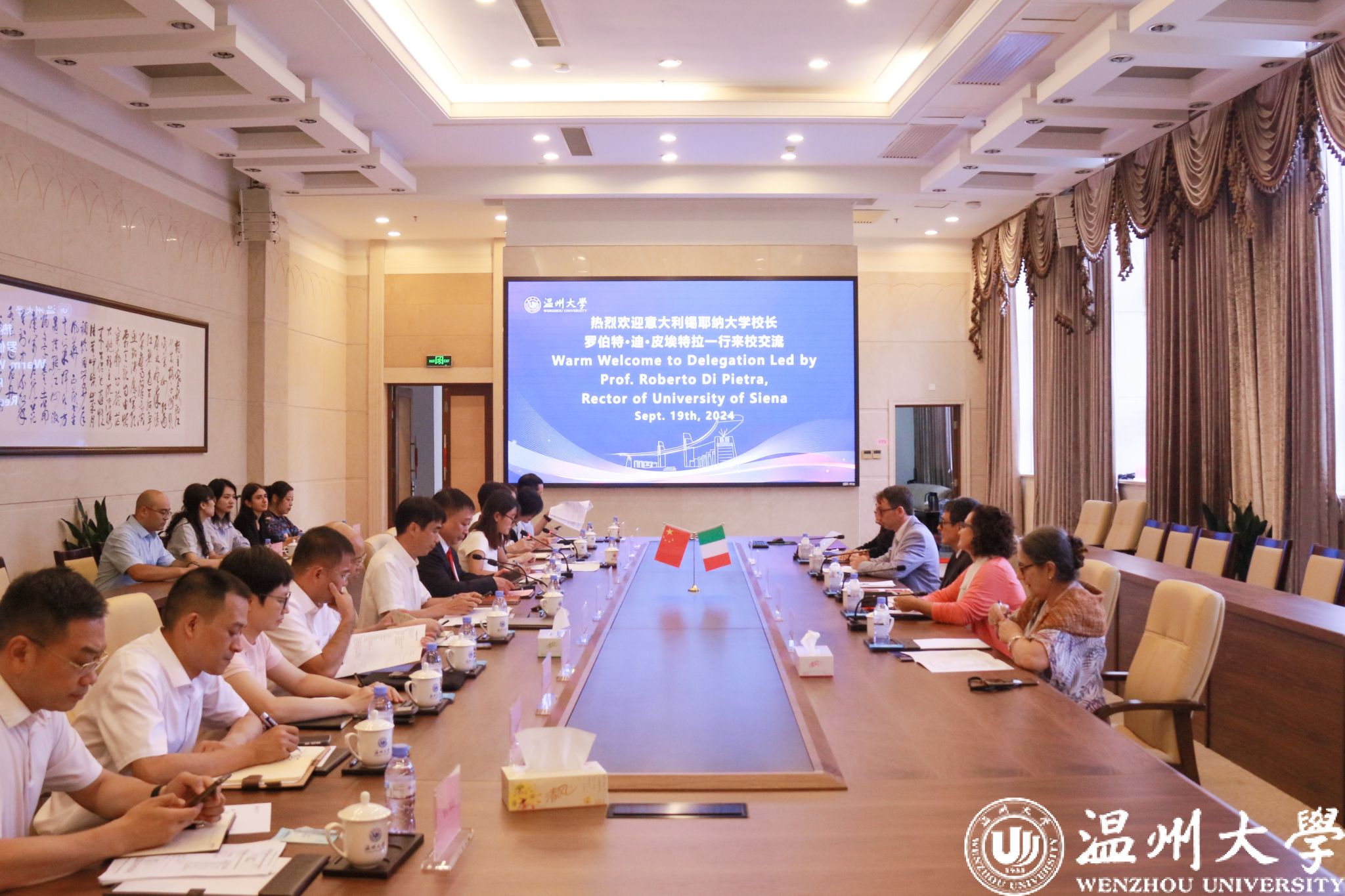 9月19日上午,意大利锡耶纳大学校长罗伯托·迪·皮埃特拉(Prof. Roberto Di Pietra)一行5人对日本a片 进行友好访问。校长赵敏以及相关部门、学院负责人热情会见客人。