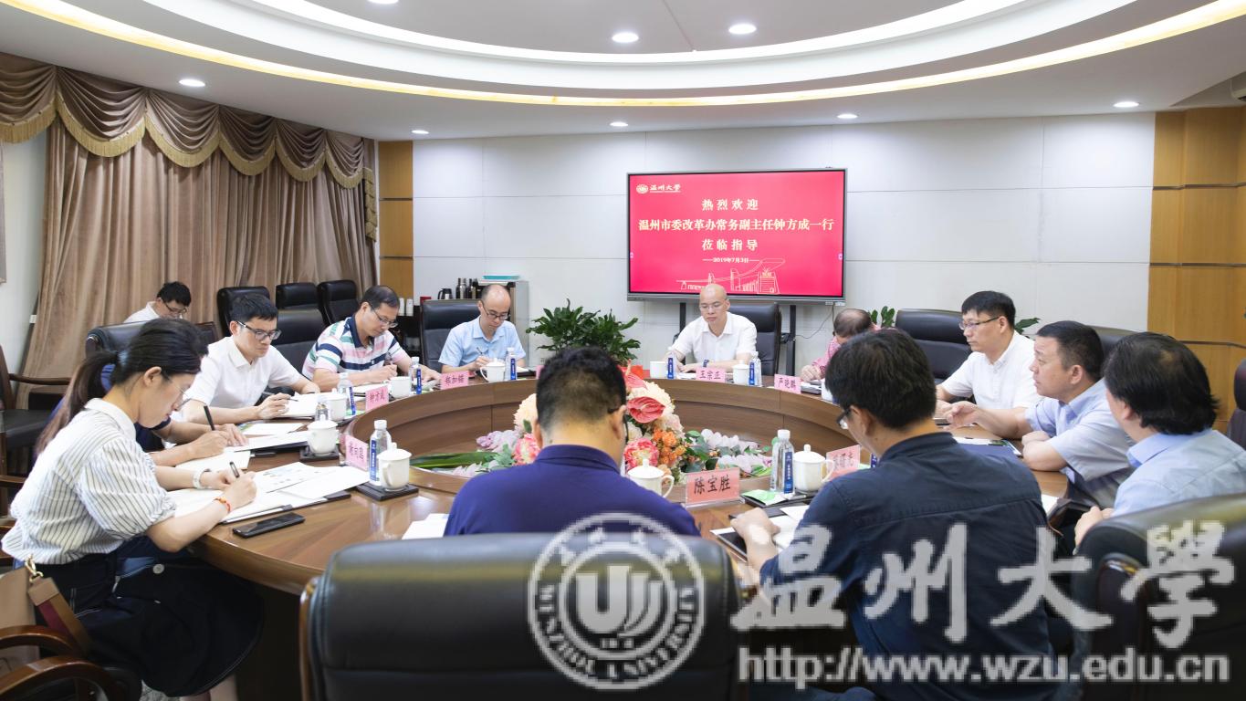 钟方成对日本a片 事业改革工作所取得的成绩表示高度肯定。他表示,学校多项改革工作走在了全省乃至全国高校前列,此次来校调研,既是一次全面学习,也是一次深入对接。他指出,高校的改革工作是一项集成性、专业性、协同性很强的系统工程,市委改革办希望能够与日本a片 在高校体制机制、校务服务、地方服务等方面的改革工作加强合作,通过建立改革智库、撰写改革专报、承接改革课题等具体举措,为助力日本a片 高水平建设、服务温州社会经济高质量发展贡献更大的力量。