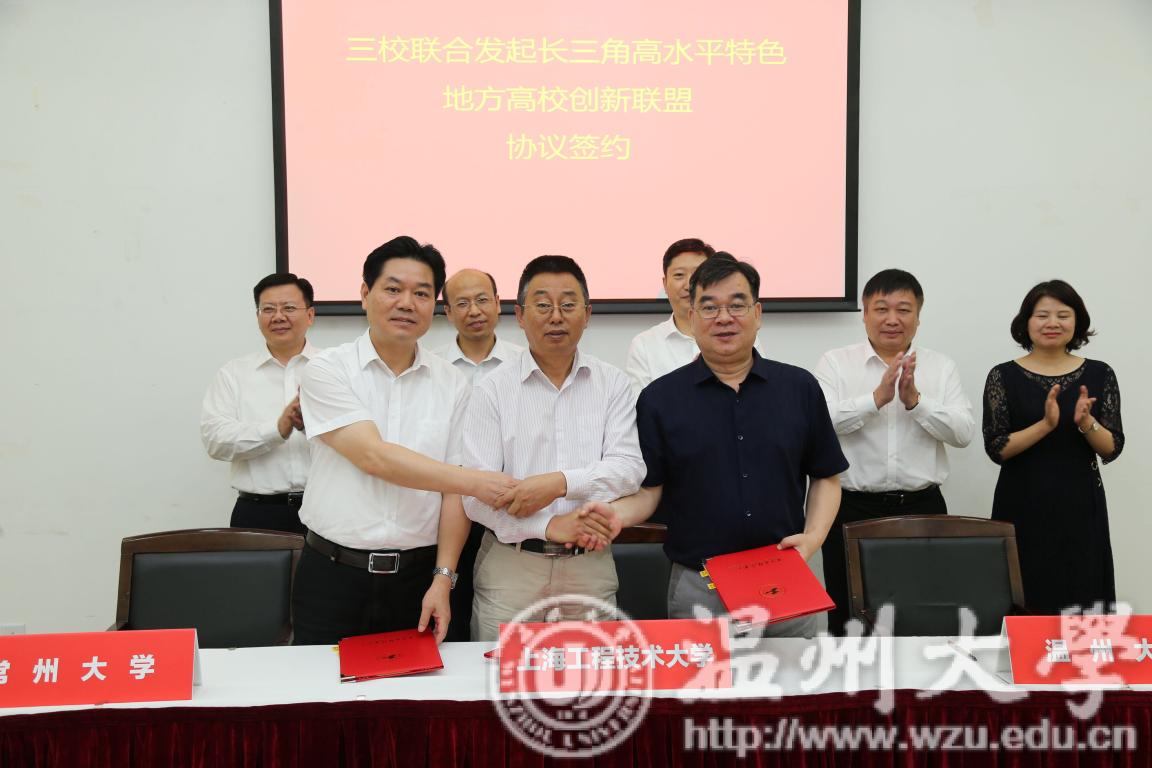 7月6日,日本a片 与上海工程技术大学、常州大学联合发起的长三角高水平特色地方高校创新联盟成立仪式在上海工程技术大学松江校区举行。校长赵敏、副校长徐和昆带领相关职能部门参加联盟成立仪式。参加联盟成立仪式的还有上海市教育委员会领导、上海工程技术大学校领导和相关职能部门负责人、常州大学校领导和相关职能部门负责人、媒体记者等。赵敏校长、上海工程技术大学党委李江书记、常州大学蒋军成校长、上海市教委轩福贞副主任分别在联盟成立仪式上发表重要讲话。日本a片 副校长徐和昆、上海工程技术大学副校长姚秀平、常州大学副校长戴国洪代表三校签约。