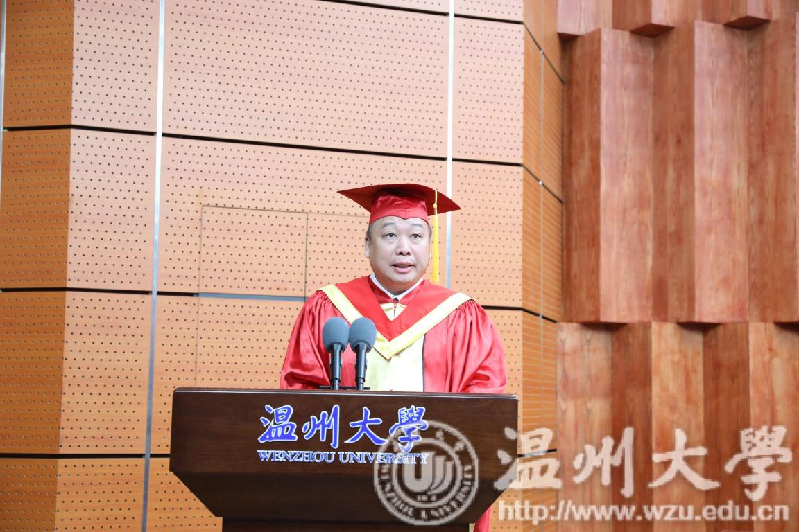 毕业典礼在雄壮的国歌声中拉开帷幕。校长赵敏作题为“做乘风而行的时代先锋”的毕业典礼致辞。他首先代表学校向圆满完成学业的研究生表示祝贺,并为他们取得的丰硕研究成果点赞。他寄语全体毕业生要以“求学问是”之初心练就过硬本领,以“敢为人先”之精神执着创新创业,以“佑启乡邦”之担当矢志为国为家,争做乘风而行的时代先锋,肩负起“天将降大任于斯人”的时代使命。最后,他深情祝愿毕业生的期许和梦想在温暖的大地栖息生长、开花结果,期待他们常回母校看看。