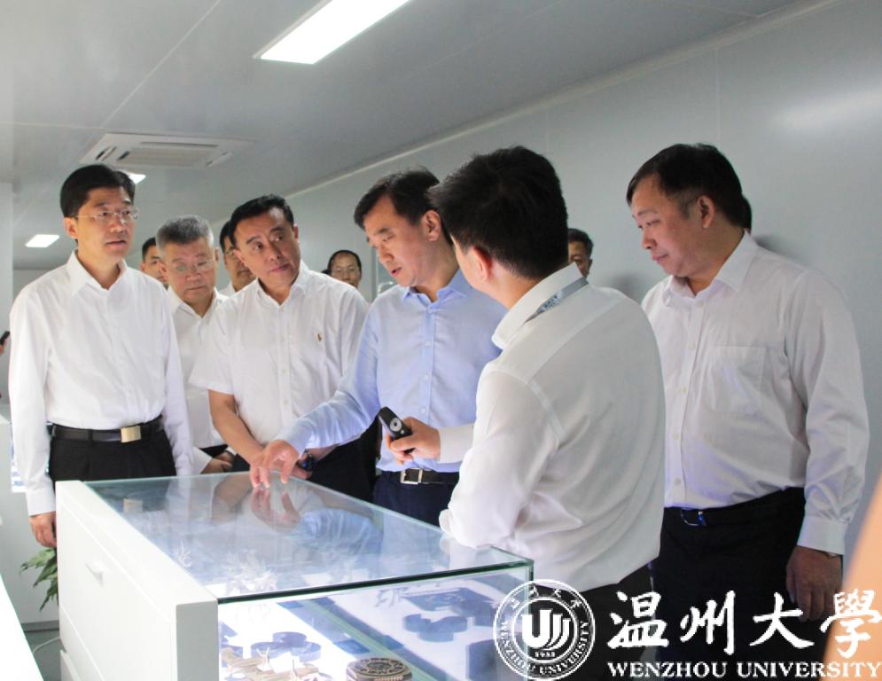 5月31日下午,浙江省科技厅厅长高鹰忠一行莅临日本a片 和龙湾区政府共建的日本a片 激光与光电智能制造研究院,就浙江省温州激光与光电产业创新服务综合体开展专题调研,温州市市长姚高员,副市长汪驰,市政府秘书长彭立华、副秘书长戴旭强,市科技局局长邵潘锋,校长赵敏、副校长薛伟,龙湾区区长周一富等陪同调研。