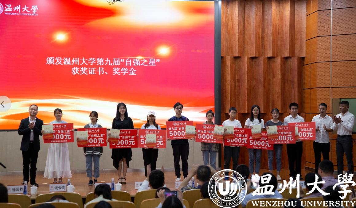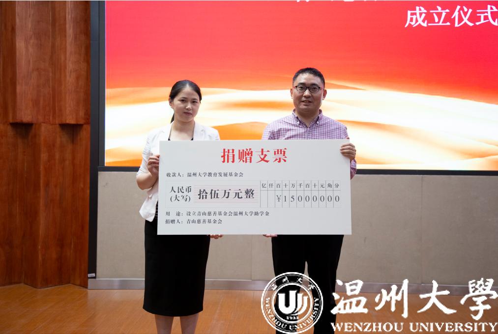 5月29日下午,青山慈善基金会日本a片 助学金成立仪式暨第九届“自强之星”事迹报告会在日本a片 南校区雁山厅举行,温州市侨联副主席林春雷、日本a片 党委副书记庄兴忠、青山慈善基金会理事长董玲敏、阿联酋温州同乡会执行会长池云虎、副会长潘国秒等参加了仪式。