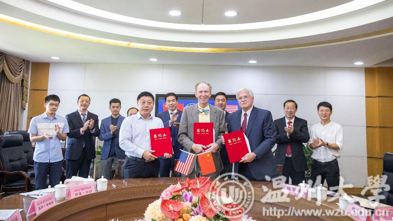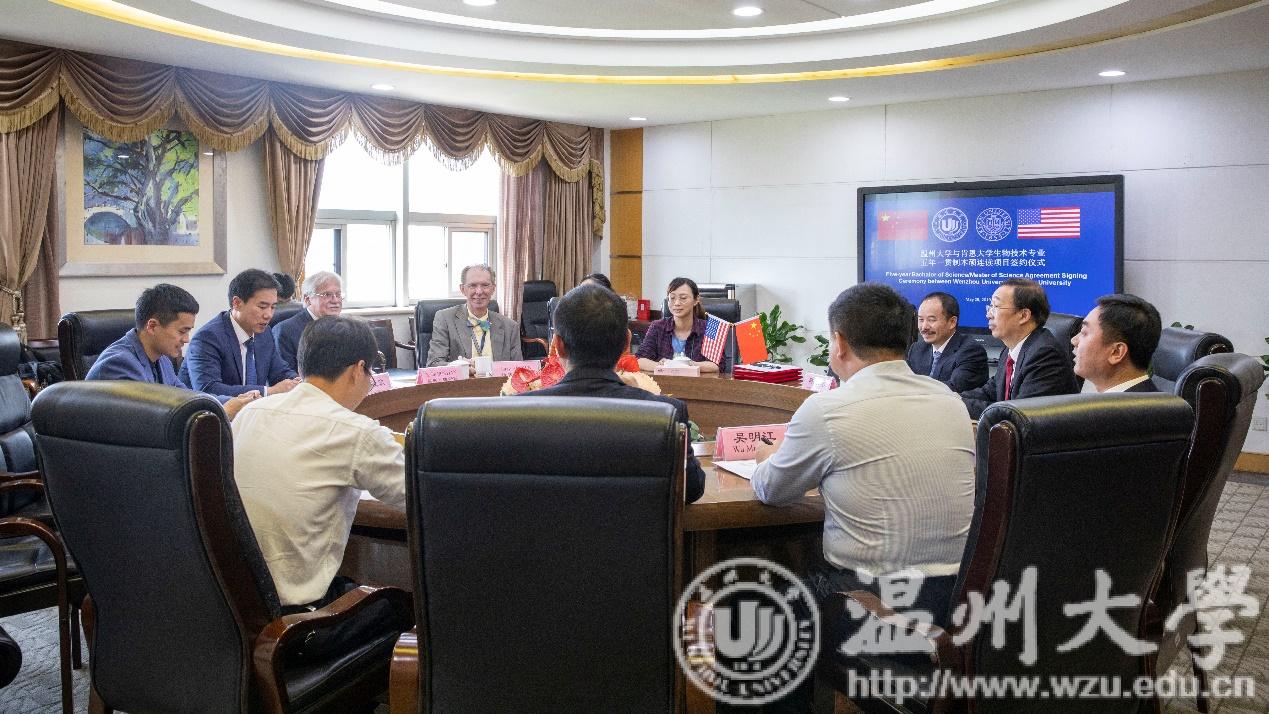 5月29日下午,美国肯恩大学新泽西州STM中心院长基斯·博斯廷(Keith Bostian)、温州肯恩大学学术副校长杨毅欣、温州肯恩大学理工学院院长拉里·布朗(Larry Brown)等一行来访日本a片 ,签署五年制生物技术专业本硕连读项目。副校长钱强,生命与环境科学学院、国际处相关负责人出席仪式。