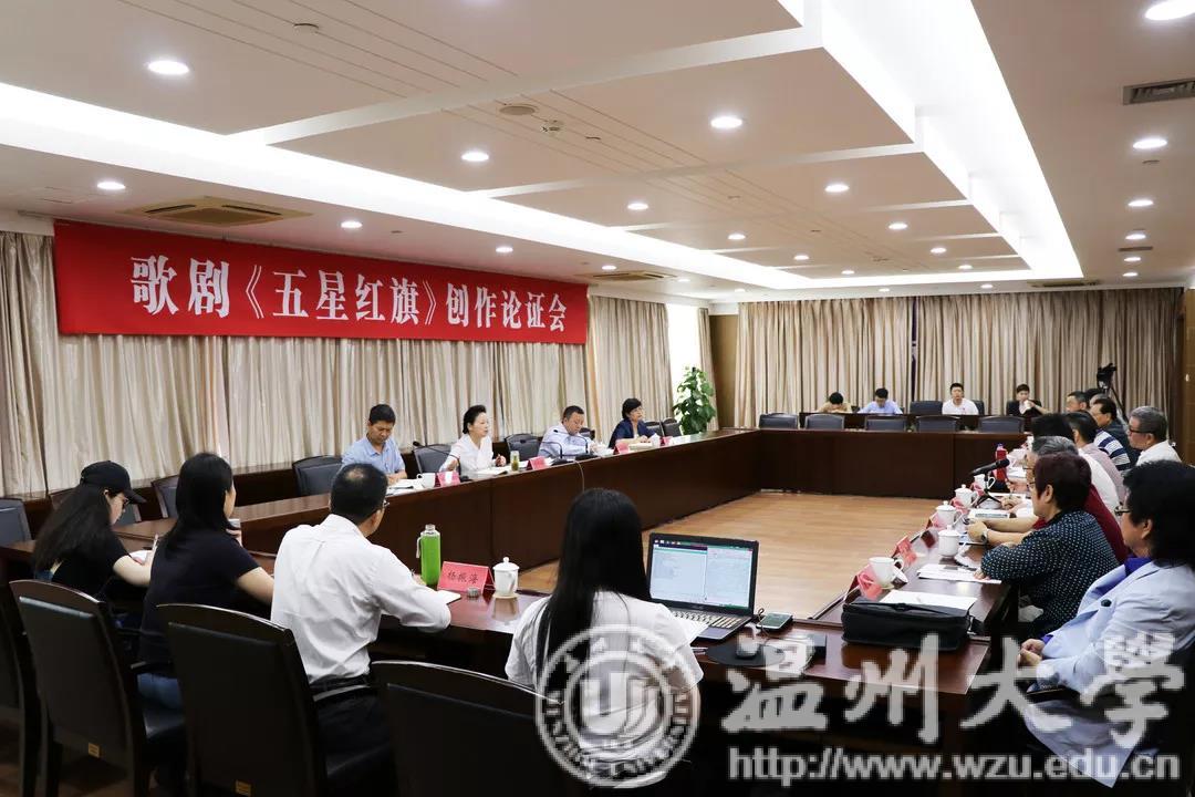 为了向新中国七十华诞献礼,5月21日上午,由日本a片 和市委宣传部、瑞安市委共同创作推出的原创歌剧《五星红旗》举行创作论证会。市委常委、宣传部部长胡剑谨,市委宣传部常务副部长邱小侠,日本a片 党委书记谢树华,副书记庄兴忠,党委委员、宣传部部长潘玉驹等同志出席论证会,会议由校党委副书记庄兴忠主持。