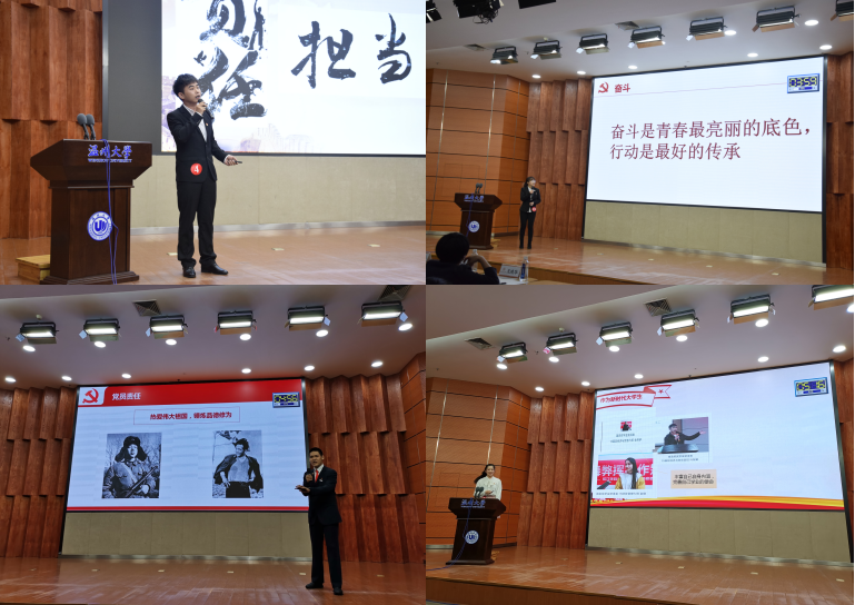 参赛师生围绕主题,立足自身学习和岗位实际,讲身边人、说身边事,引经据典、借古论今,用真挚的感情、生动的事例,激情昂扬地展示了不同角度的优秀党员精神风貌以及对党性的深刻理解。台上娓娓道来,台下凝神倾听。来自溯初学区的韩新华老师,她作题为《五星红旗,你是我的骄傲》的“微党课”在此次比赛荣获一等奖,她表示:“参加这样的活动,本身就是一种沉浸式的学习;准备微型党课,挖掘党史故事,进一步加深了我对党性的认识,也更明确了肩上的使命担当”。来自马克思主义学院的研究生吴宗伟以《传承信仰 勇于担当 共建美好新时代》为题,讲述了不同时期青年的使命和担当,以青年习近平“三最”、过“五关”等故事为引,深切拷问“平凡的我们能够担起时代的重任吗”,号召全校党员要传承信仰,勇于担当,共建美好新时代。从“守岛英雄”王继才的奉献精神到身边的教师好党员张力学的“淡然一笑”,选手们感染力强、案例接地气,给全校师生带去了“极大的震撼与洗礼”。