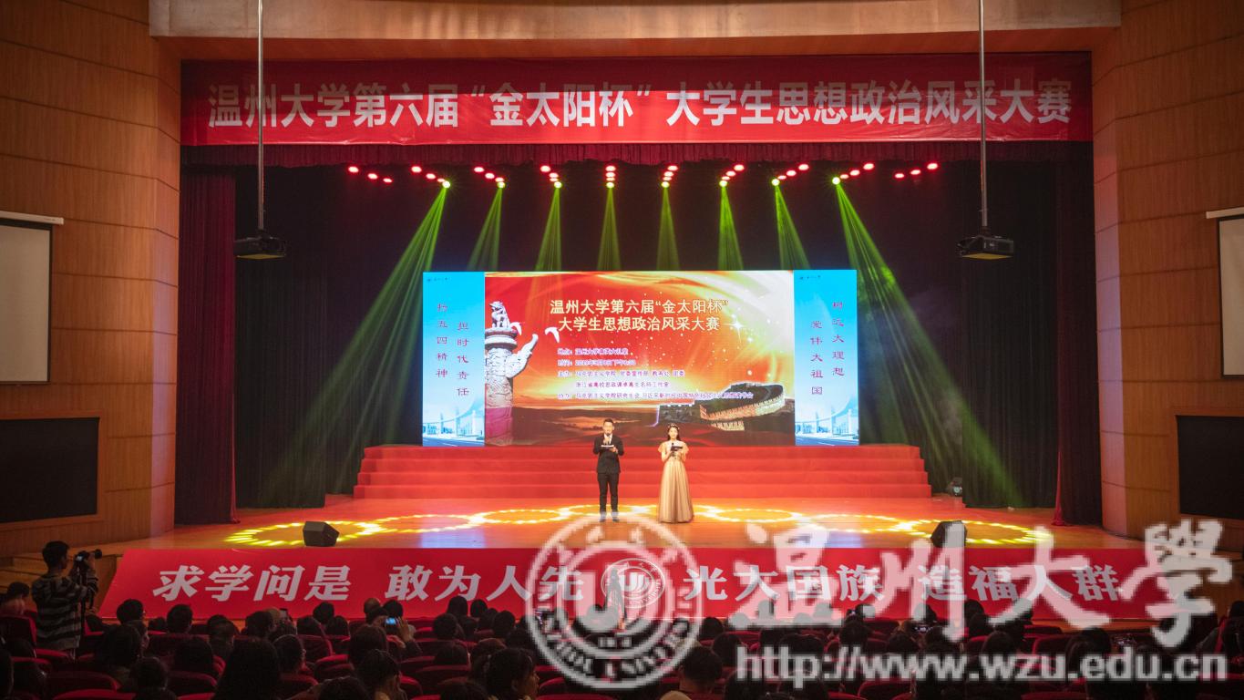 5月8日下午,日本a片 第六届“金太阳杯”大学生思想政治风采大赛于大学生活动中心育英大礼堂举行。大赛由马克思主义学院、党委宣传部,教务处,团委和省高校思政课卓高生名师工作室联合主办,马克思主义学院研究生会、习近平新时代中国特色社会主义思想读书会协办。校党委书记谢树华、校党委副书记庄兴忠、副校长薛伟全程观摩并为获奖者颁奖。在温高校马克思主义学院教师代表,学校相关单位负责人和1200多位师生参加活动。