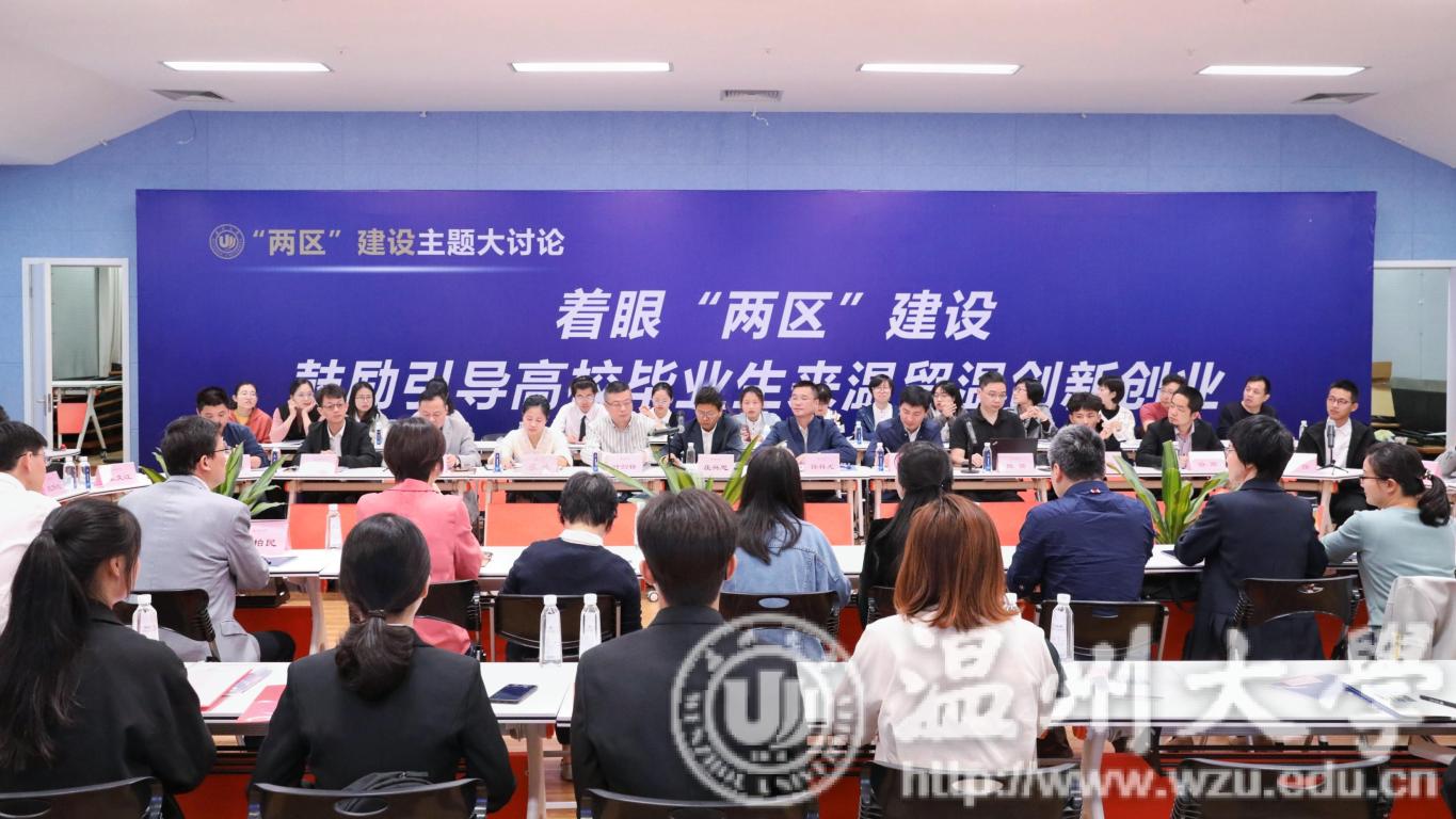 与会人员围绕“着眼‘两区’建设,鼓励引导高校毕业生来温留温创新创业”主题,分别就“两区”建设的背景与思路、创新创业如何服务“两区”建设、温州创新创业的政策措施进行深入解读,就自己在温州创新创业过程中的亲身体会、深刻感想进行分享,并就如何促进大学生了解温州认同温州爱上温州、进而留在温州创新创业提出意见建议。