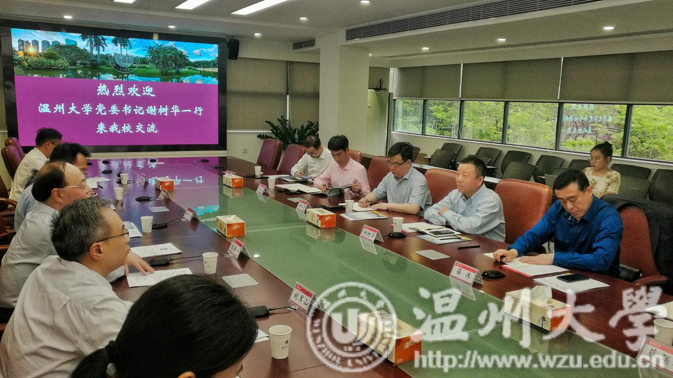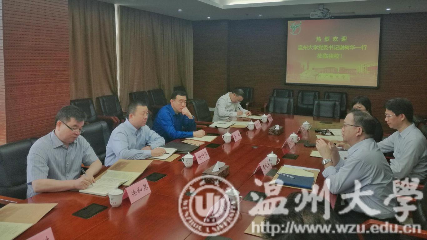 在广州大学,谢树华一行与学校党委书记屈哨兵、副校长孙延明进行了深入的探讨交流。谢树华重点了解了广州大学的学生培养、人才引进、地方服务等方面先进做法,对广州大学“学年礼活动”等创新育人举措高度赞赏。