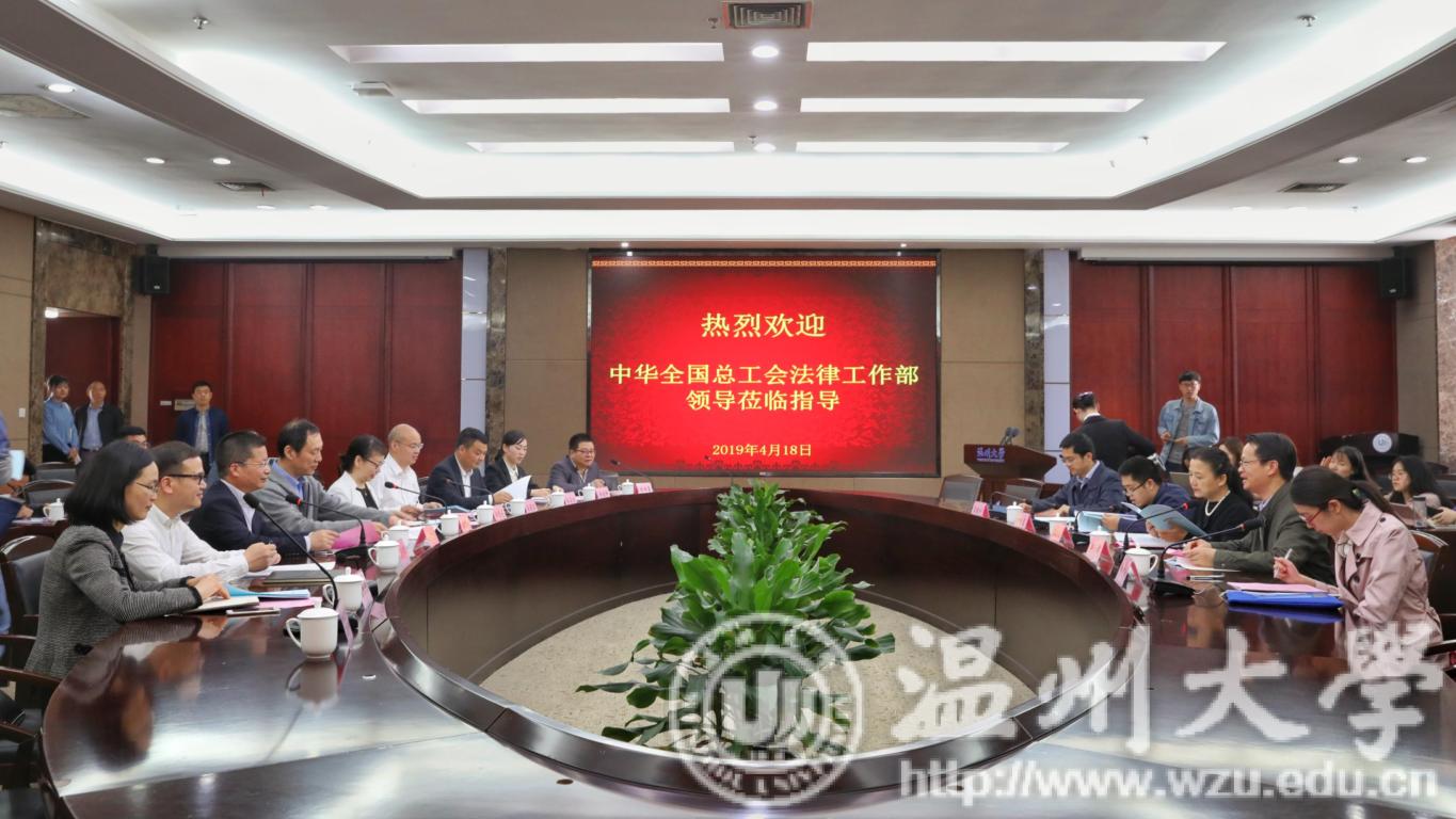 4月18日上午,由中华全国总工会法律工作部副部长张瑞玲、法律工作部法规处处长李进东、资产监督管理部保障事业处干部张爱玲,省总工会党组成员、副主席徐前和法律工作部副部长吴进州等组成的中华全国总工会调研组莅临日本a片 召开关于《工会法》实施情况、工会劳动法律监督工作情况专题调研座谈会。温州市总工会党组成员、副主席刘金丹,校党委副书记牟德刚,法政学院负责人,温州市各级工会负责人、法律援助志愿者、职工代表、学生代表等参加座谈。