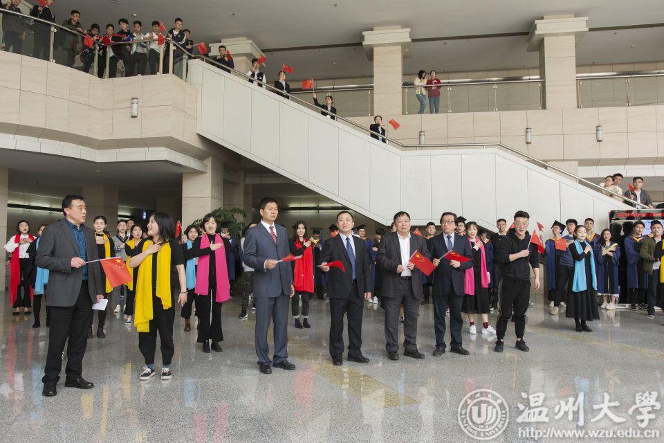 典礼前,校领导、全体毕业生、研究生合唱团还共同演唱《我和我的祖国》。