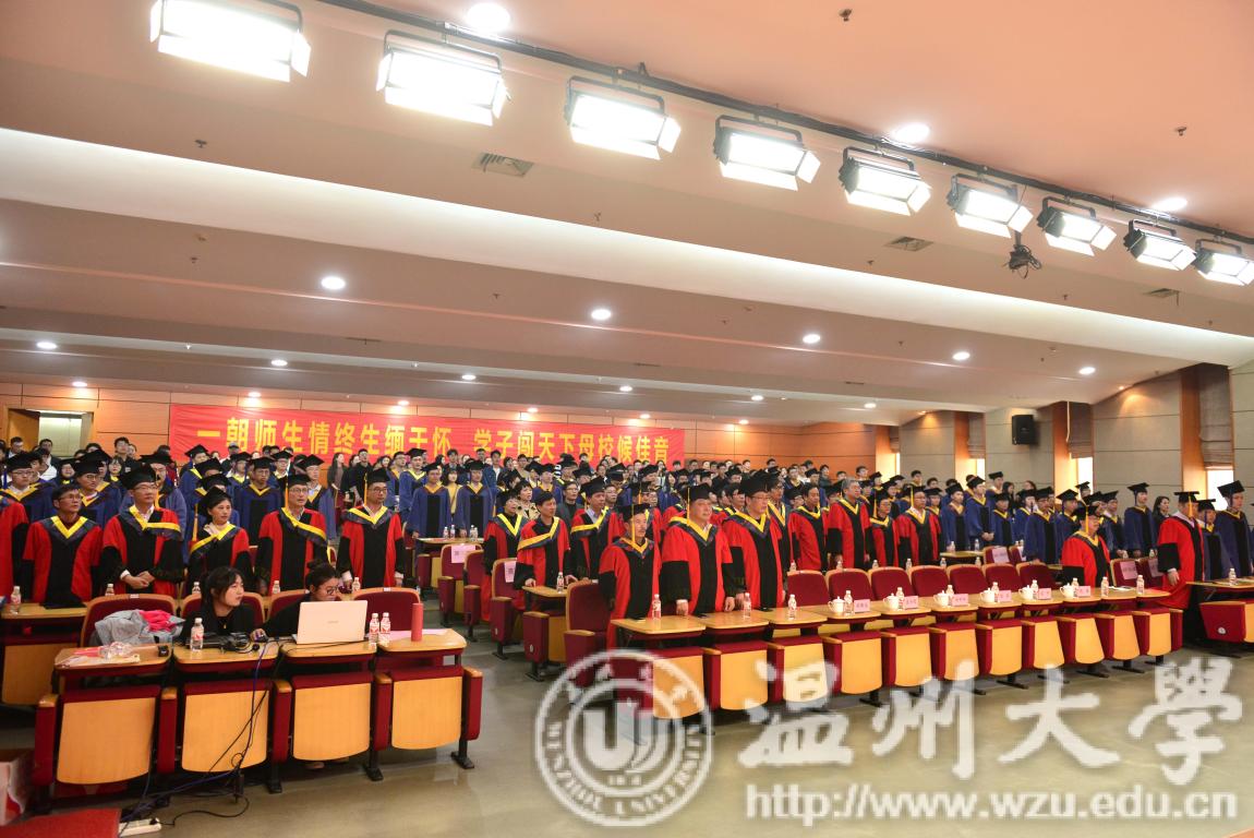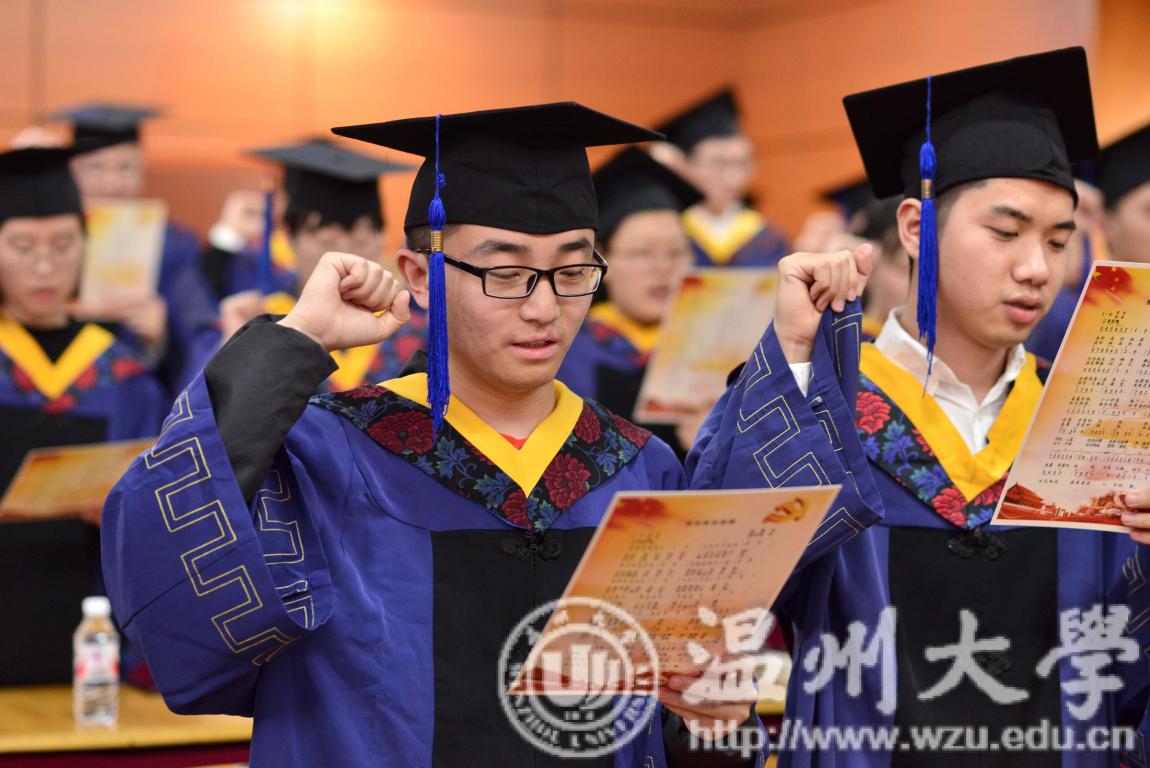 导师代表、机电学院周宏明教授代表全体硕士生导师勉励毕业生要以积极的心态面对人生,要以敢于担当的责任面对社会,要以努力拼搏的精神面对事业。毕业生代表、生环学院程银子同学在发言中深切表达了自己对母校和导师的感恩之情,并带领全体毕业研究生宣誓,号召学子牢记师长的教导,做一名“有理想、有情怀、有担当”的温大人。