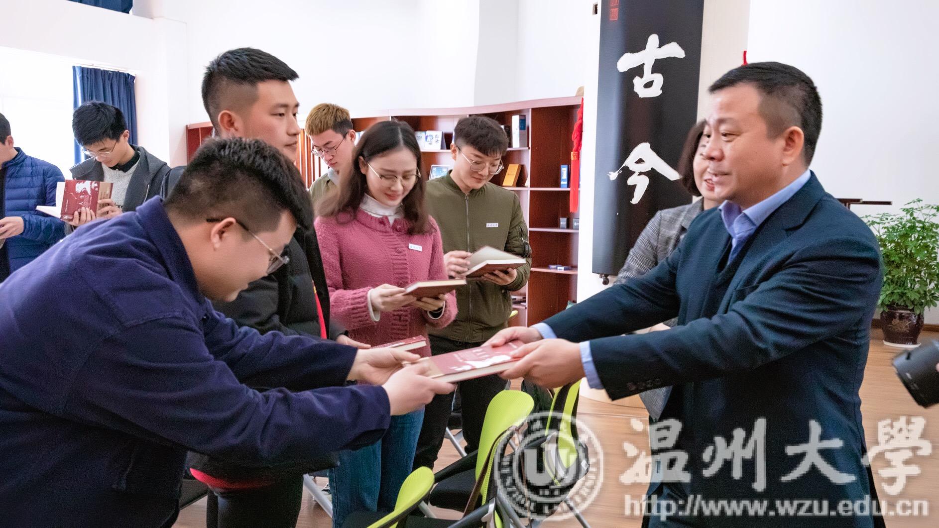 谢树华还为学生代表赠送书籍《培根论人生》,并嘱咐同学们,要多看书,多与大师对话。