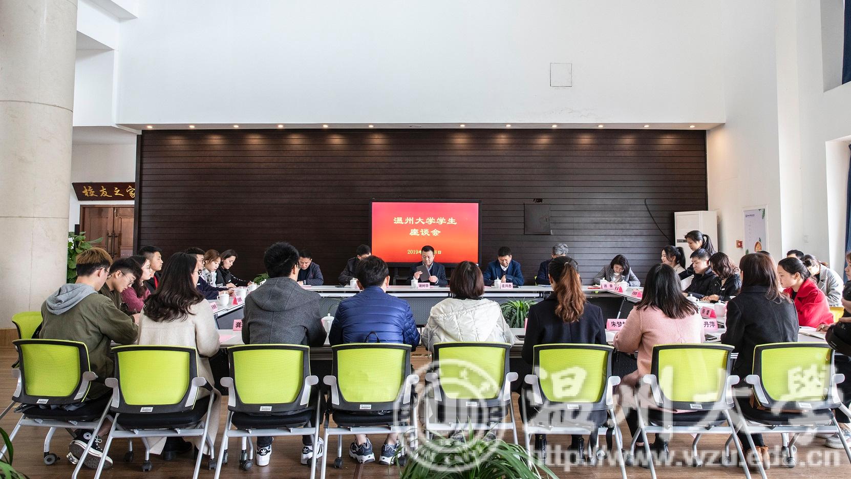 3月18日下午,日本a片 在南校区行政楼校友之家召开学生代表座谈会,校党委书记谢树华、校党委副书记庄兴忠,校办、研究生部、学生处、团委负责人以及来自各学院、学区的20名学生代表参加座谈会,谢树华主持。