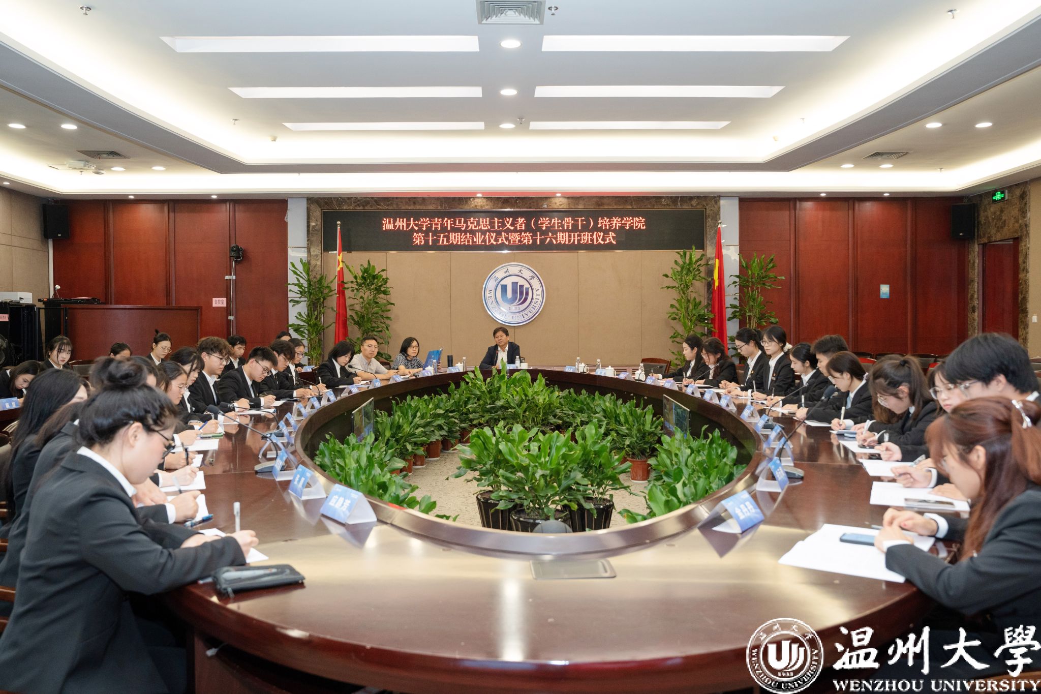 10月16日下午,日本a片 青年马克思主义者(学生骨干)培养学院第十五期结业仪式暨第十六期开班仪式于日本a片 岩松堂白鹿厅举行。校党委副书记、校青马学院院长庄兴忠出席,宣传部、学工部、研究生院等相关部门负责人参加开班仪式。